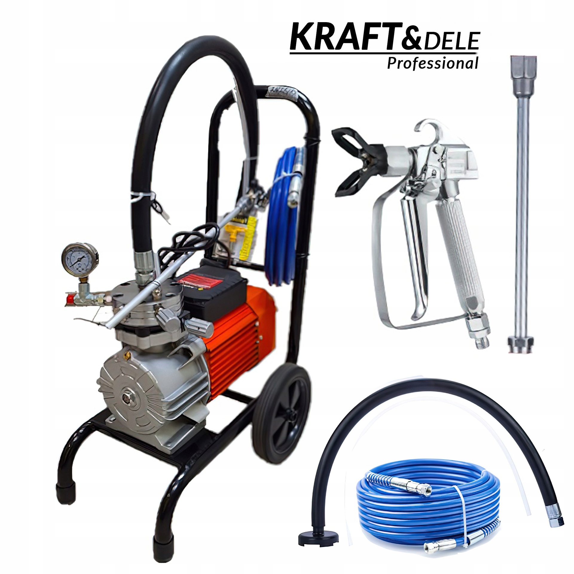 Bezpowietrzny agregat malarski KD2123 Kraft&Dele nadaje się do wszystkich rodzajów farb wodnych i rozpuszczalnikowych.