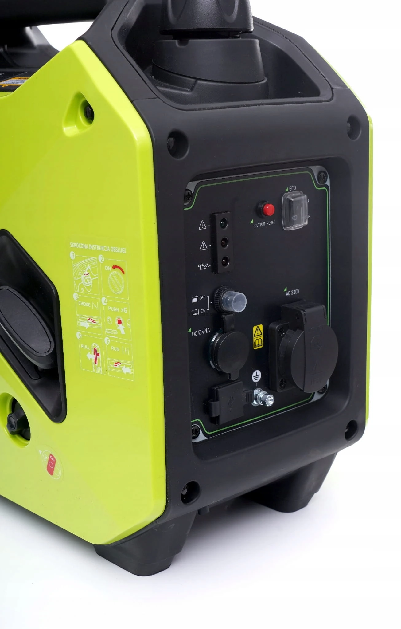 ➡️ Agregat inwertorowy w celu zwiększenia komfortu użytkowania jest wyposażony we wskaźniki: napięcia, przeciążenia i poziomu oleju. Generator prądu wytwarza prąd elektryczny o napięciu zmiennym AC ~230V z czystą i wygładzoną sinusoidą.