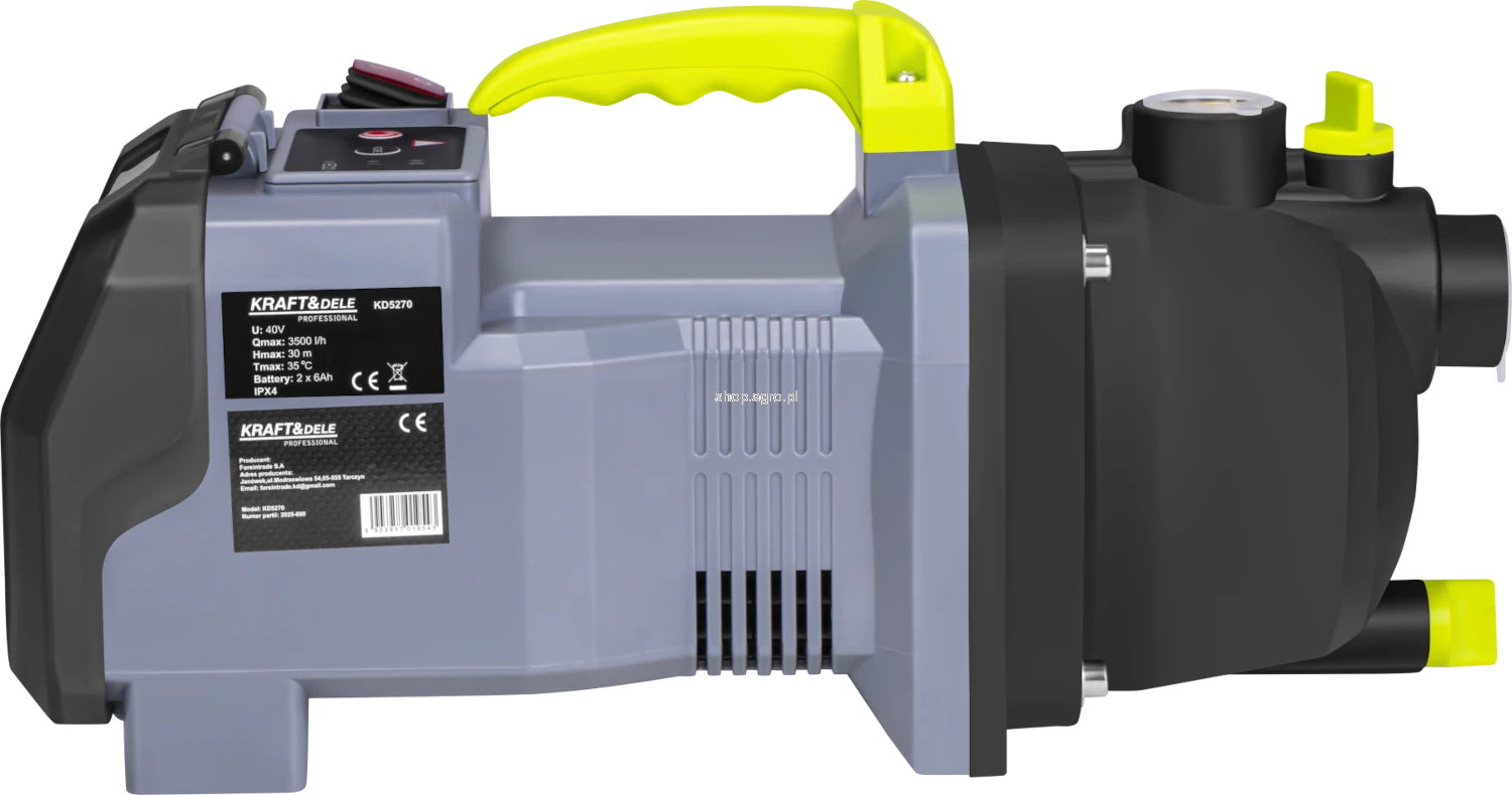 Pompa ogrodowa akumulatorowa; pompa 40V; pompa 3500L/h; pompa do nawadniania; pompa do wody deszczowej; pompa z akumulatorem 6Ah; KD5270;