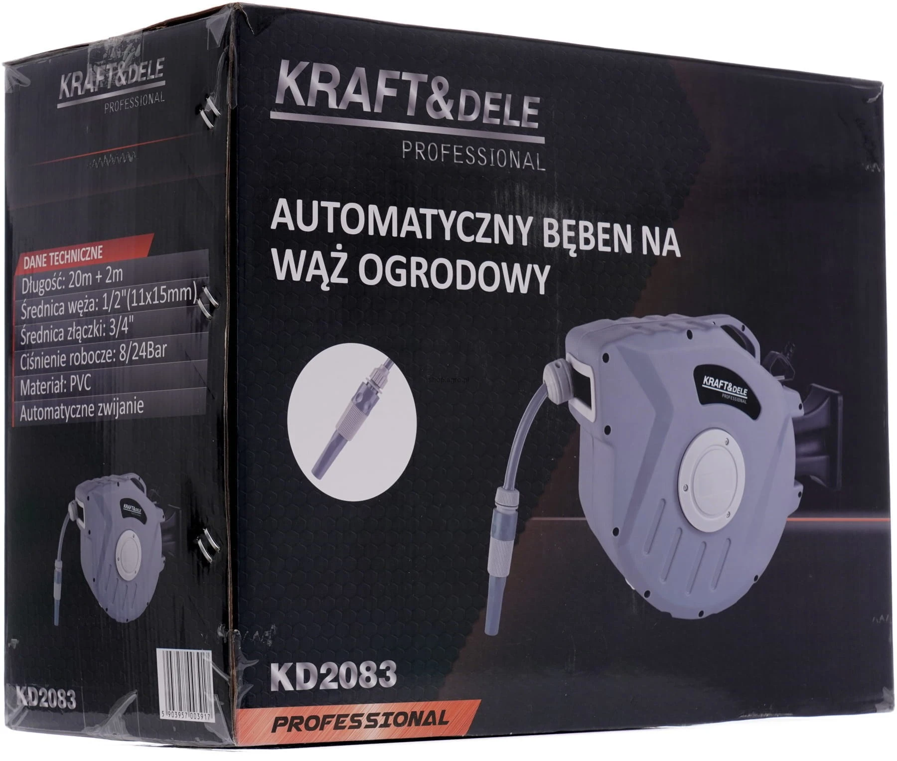 automatyczny bęben na wąż; zwijacz węża ogrodowego; bęben na wąż 20m; wąż ogrodowy 1/2 cala; bęben ścienny na wąż; akcesoria ogrodowe; Kraft&Dele KD2083;