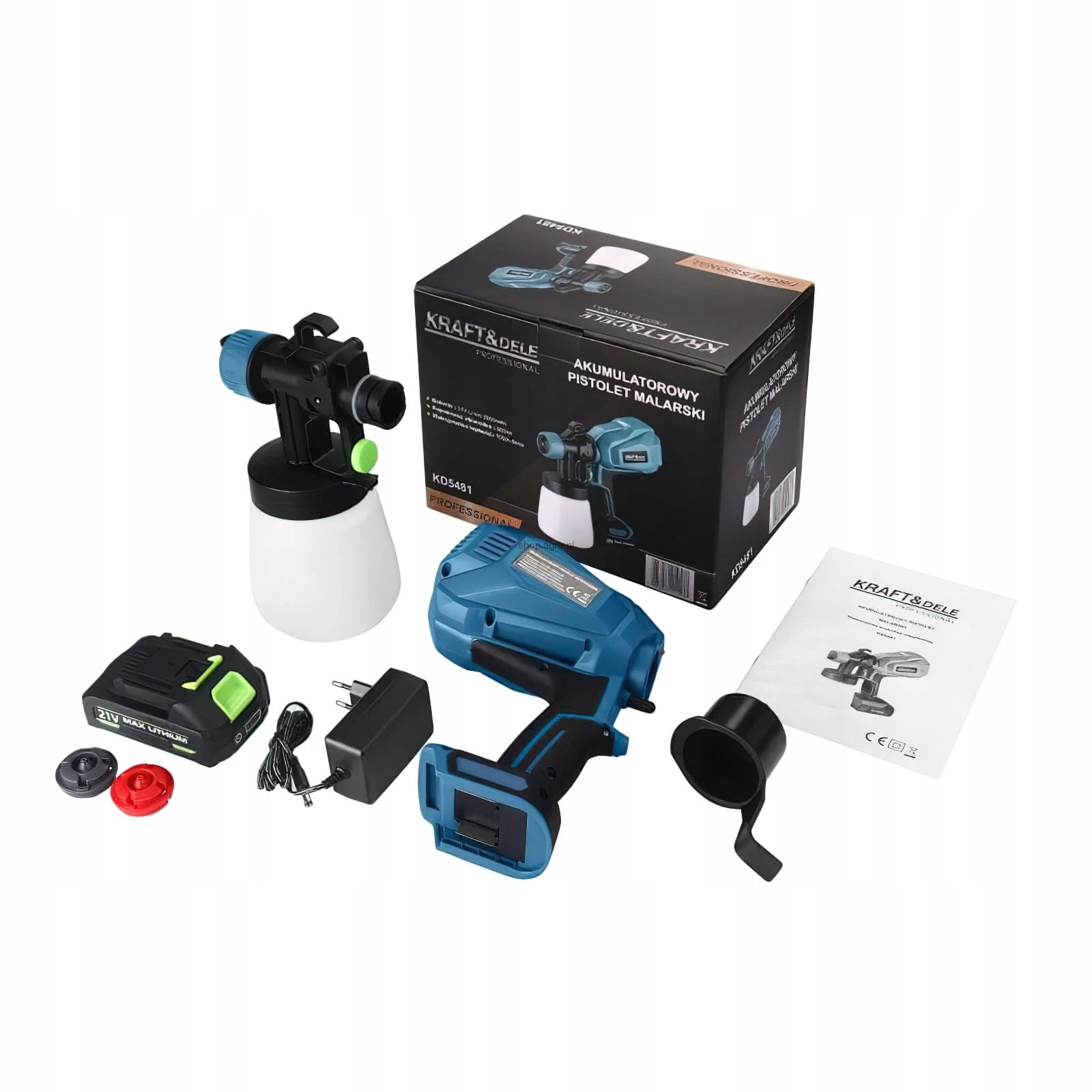 Bezprzewodowy Akumulatorowy Pistolet Natryskowy Lakierniczy 21V 800 ml LED