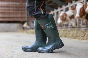 Buty robocze Purofort S5 TerraPRO są zaprojektowane do pracy w trudnych warunkach atmosferycznych, zapewniając izolację do -50°C. Są idealne dla osób pracujących w środowiskach narażonych na niskie temperatury, w tym dla hodowców zwierząt gospodarskich. Gruba podeszwa butów zapobiega wyziębieniu stóp, a ich specyficzna konstrukcja czyni je doskonałymi do pracy w wilgotnym i mokrym środowisku.