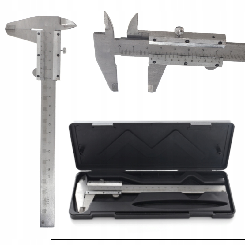 Wykonana ze stali nierdzewnej klasyczna suwmiarka pozwala na przeprowadzanie pomiarów w zakresie od 0-150mm. z dokładnością do 0,02mm. Wyraźna i czytelna podziałka wpływa na dokładność i łatwość odczytu wskazanych wartości. Całość jest umieszczona w wytrzymałym i poręcznym opakowaniu. Umożliwia wykonanie pomiarów zewnętrznych, wewnętrznych, pomiaru wysokości i głębokości.
