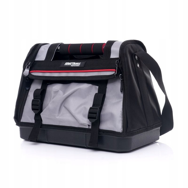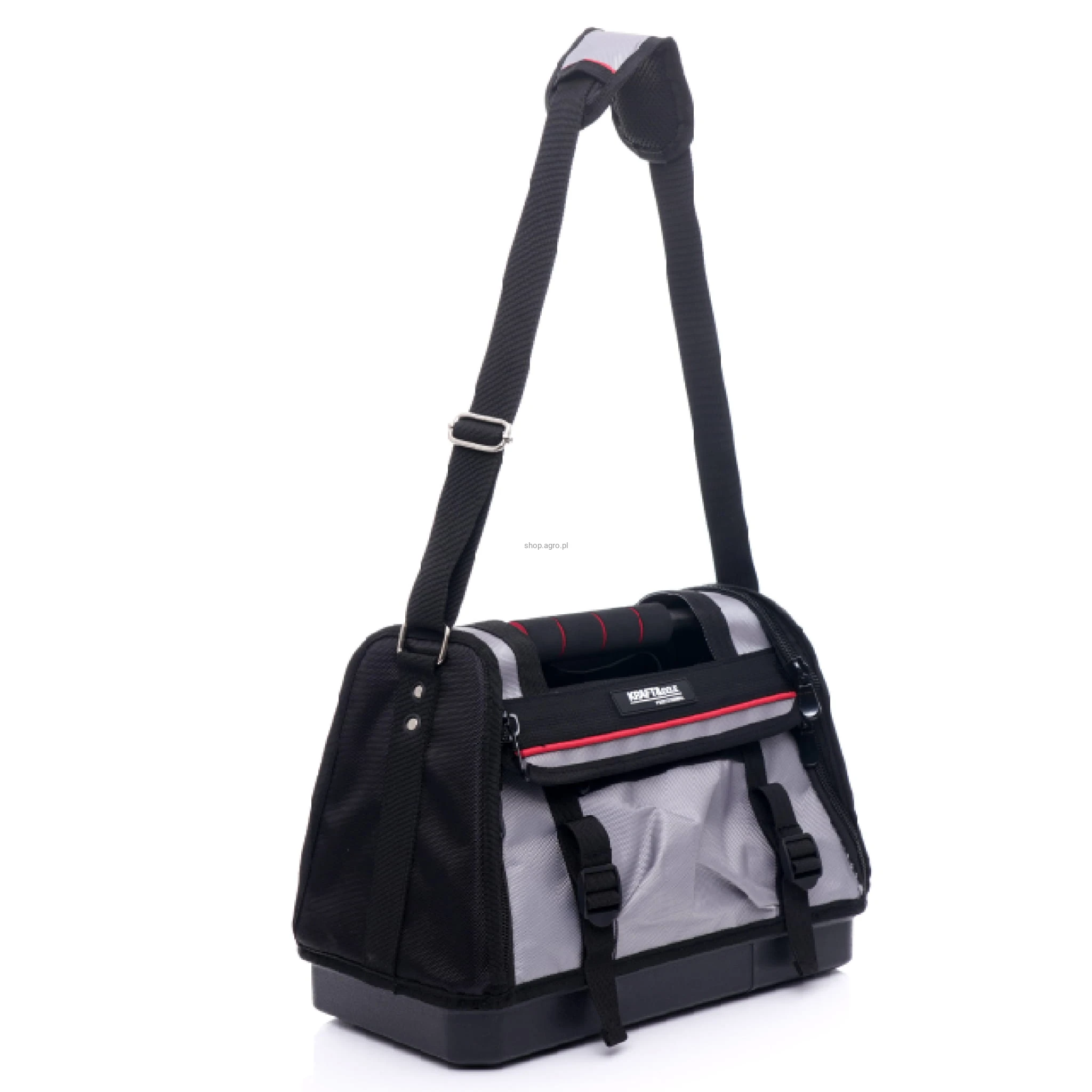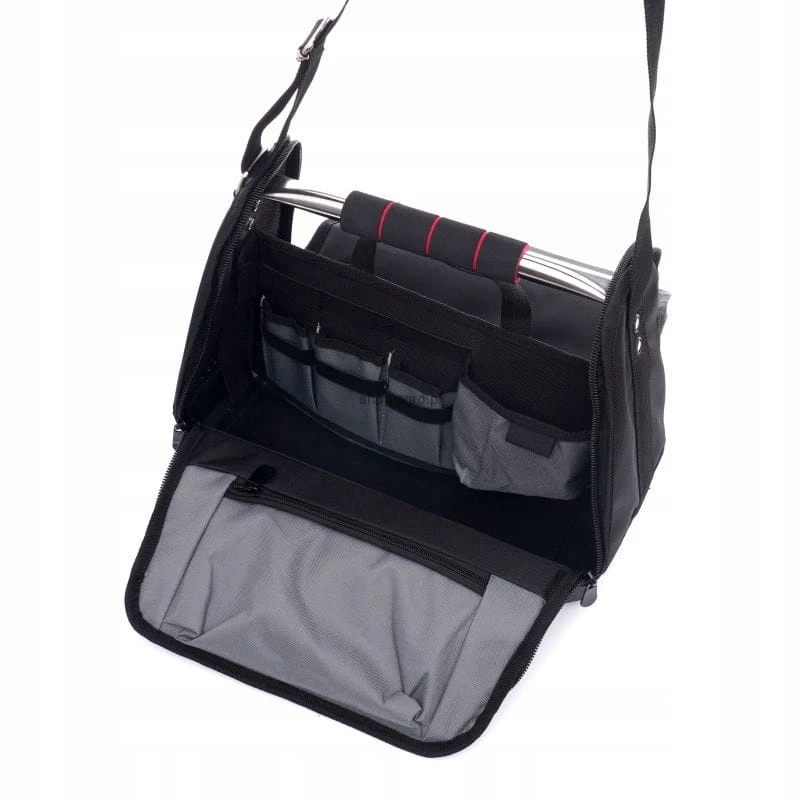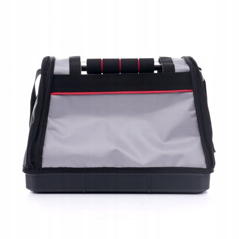 - Sztywne dno pokryte kompozytowym tworzywem zapewnia trwałość, a wiele kieszeni porządek oraz szybki dostęp do potrzebnych narzędzi.