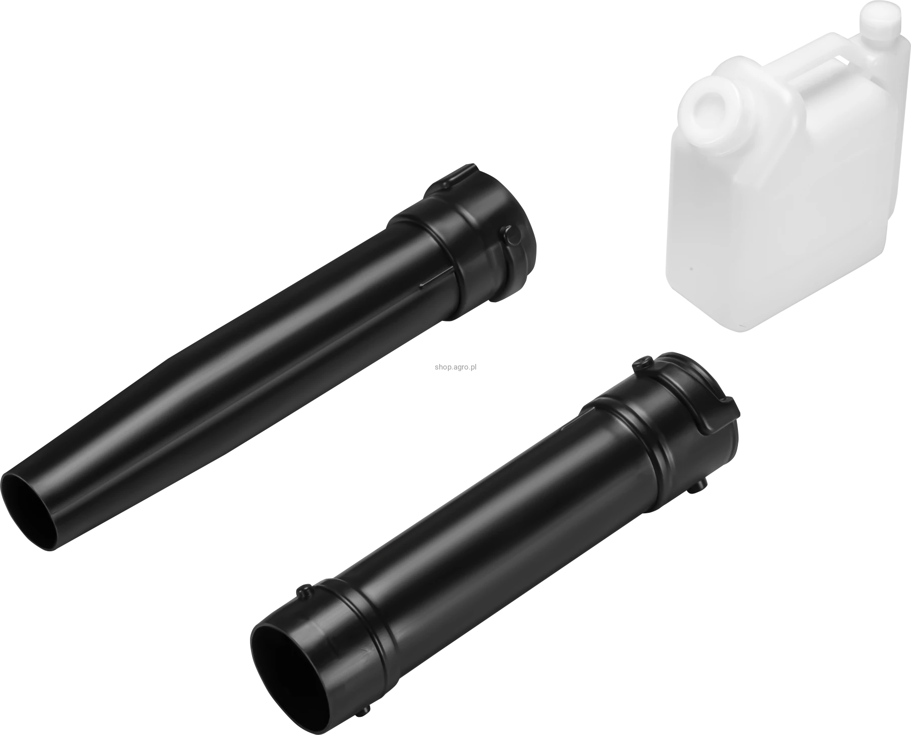 Dmuchawa pracuje na mieszance paliwa i oleju w proporcji 25:1, posiada zapłon CDI oraz gaźnik z pompą membranową, co zapewnia stabilną i niezawodną pracę silnika. Rozrusznik ręczny umożliwia szybkie uruchomienie, a dołączone akcesoria zwiększają funkcjonalność zestawu.