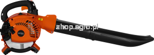 Urządzenie wyposażone jest w silnik spalinowy o pojemności 26 cm³ i mocy 3,8 KM, który zapewnia bardzo dużą siłę nadmuchu – prędkość wydmuchu sięga aż 380 km/h. Dzięki temu dmuchawa skutecznie usuwa liście, drobne gałęzie i inne zanieczyszczenia, a funkcja odkurzania umożliwia ich wygodne zbieranie do worka.