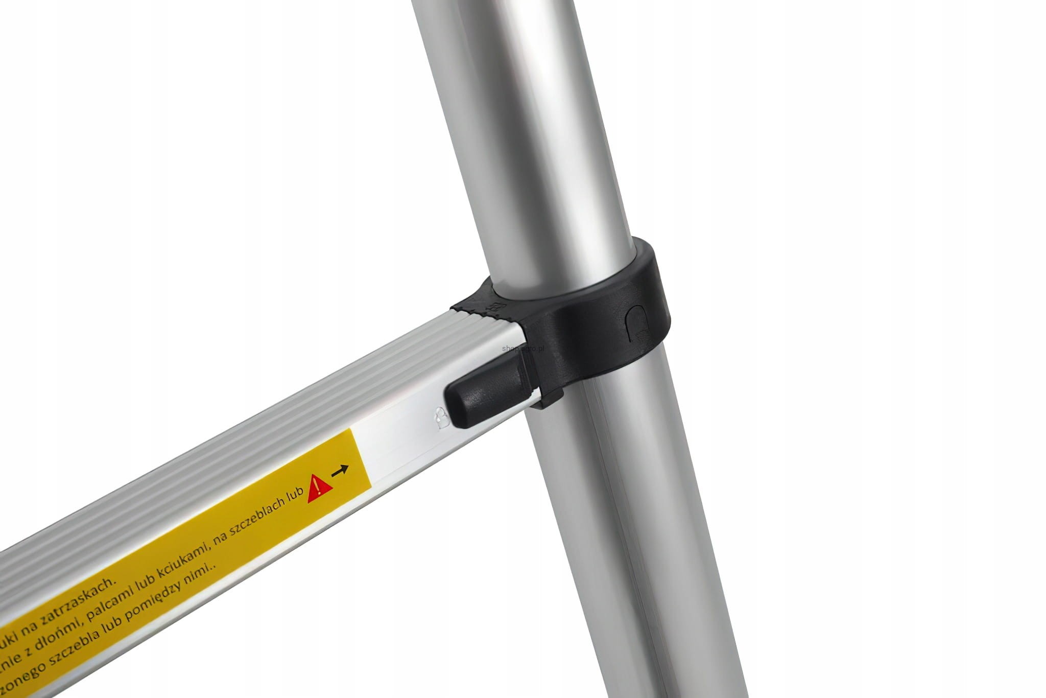 ➡️ Każdy stopień aluminiowej drabiny teleskopowej ma przesuwaną blokadę, którą można odblokować przez naciśnięcie