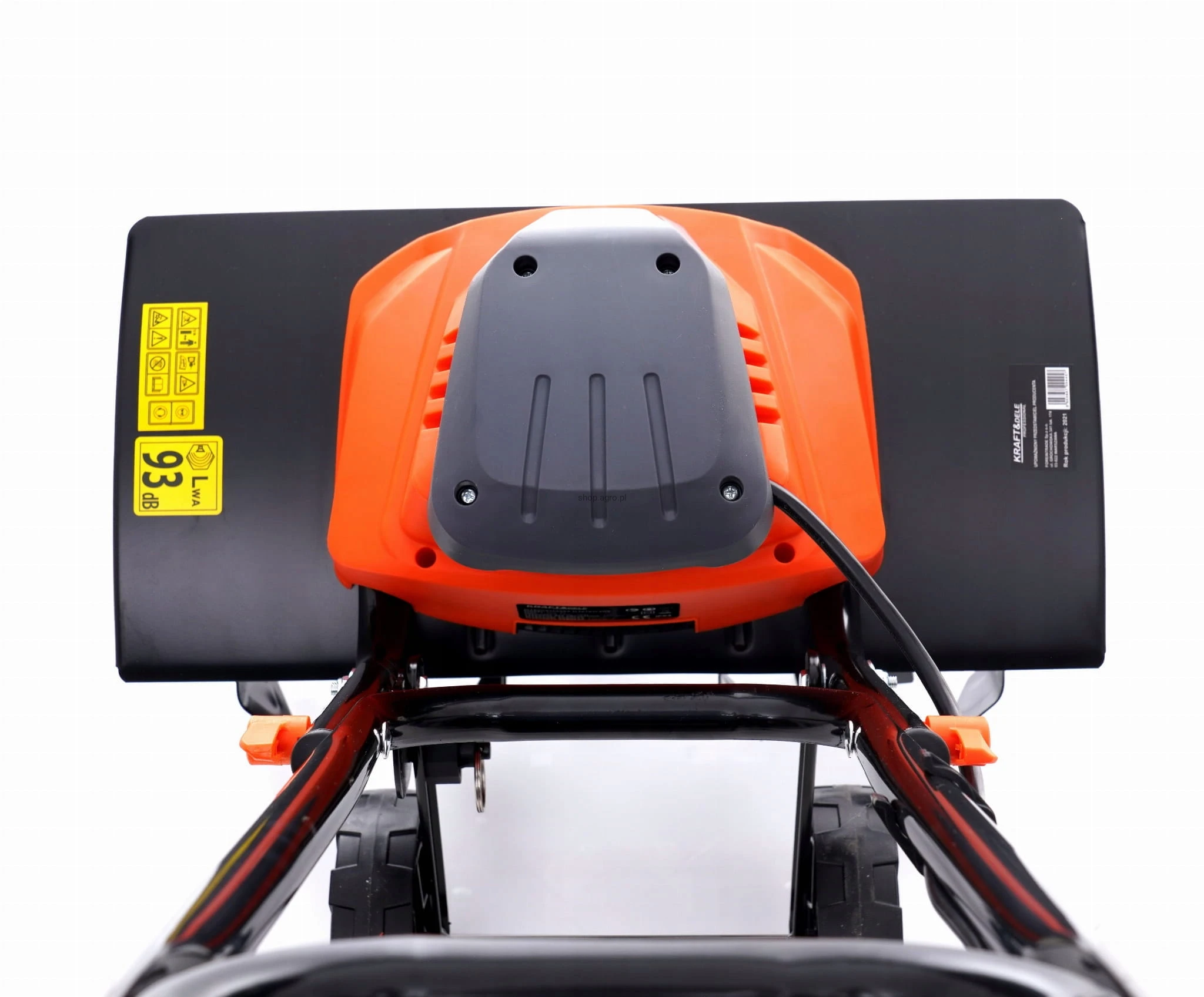 ➡️ Blokada włączenia w prawym górnym rogu zapobiega przypadkowemu włączeniu elektrycznej glebogryzarki.