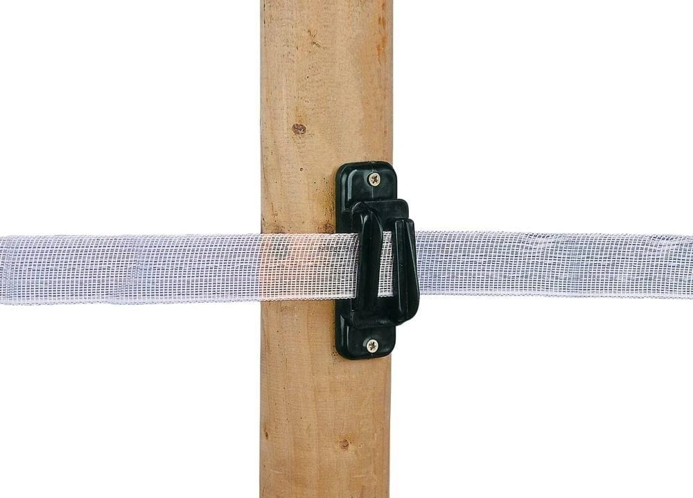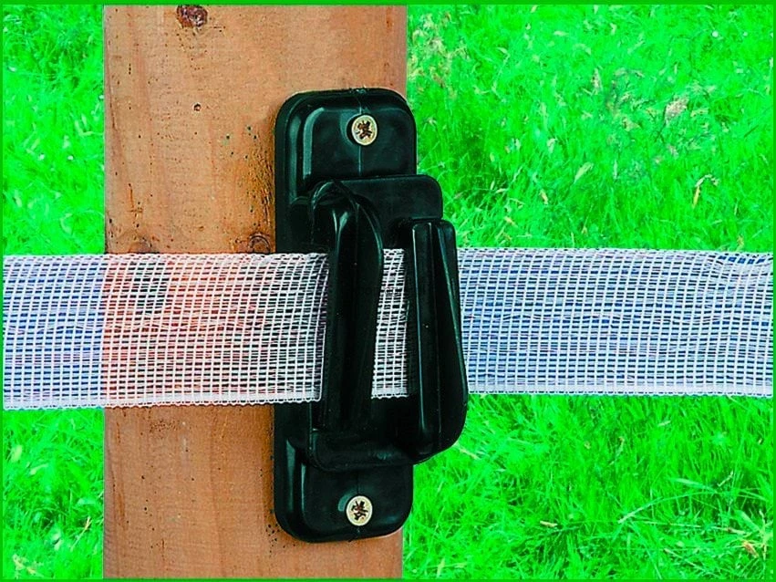 - taśma przechodzi przez izolator — dzięki temu możliwe jest bezproblemowe naciągnięcie taśmy na dłuższym odcinku