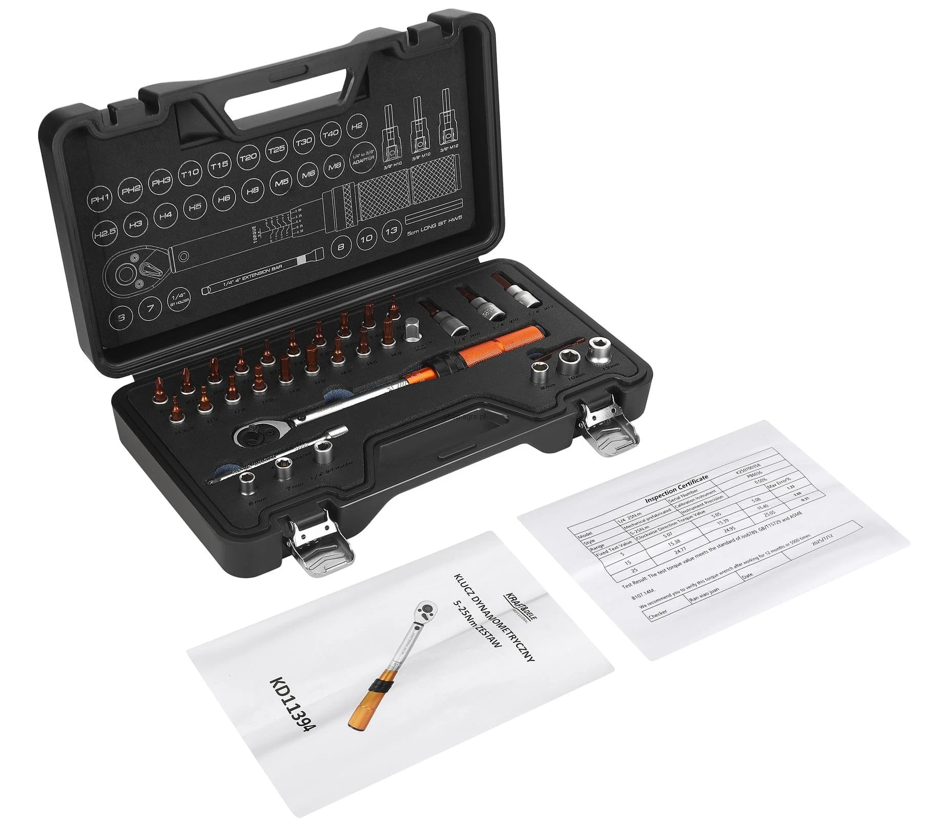 KLUCZ DYNAMOMETRYCZNY 5–25Nm ZESTAW 32el. KD11394