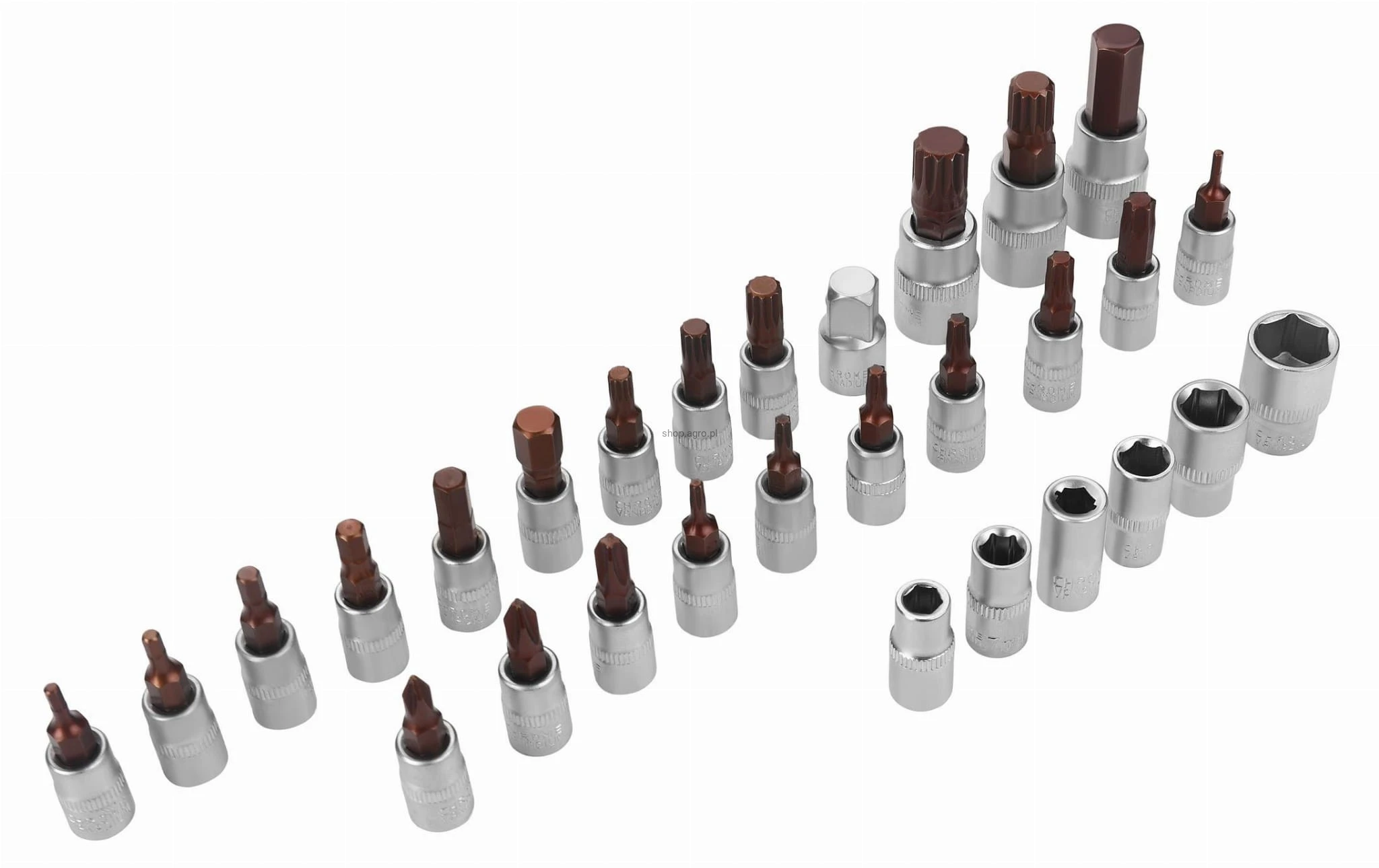 ✅ Nasadki typu bit 1/4": T10, T15, T20, T25, T30, H2, H2.5, H3, H4, H5, H6, H8, PH1, PH2, PH3, M5, M6, M8