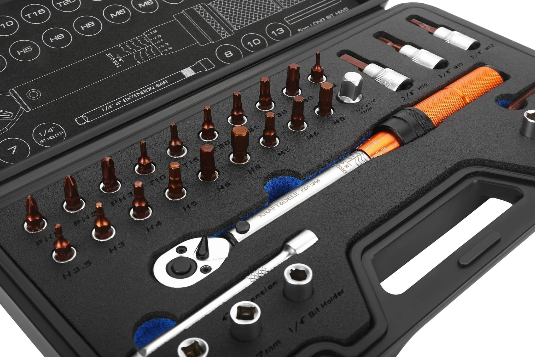 KLUCZ DYNAMOMETRYCZNY 1/4" 5-25Nm ZESTAW 32el. KD11394