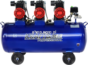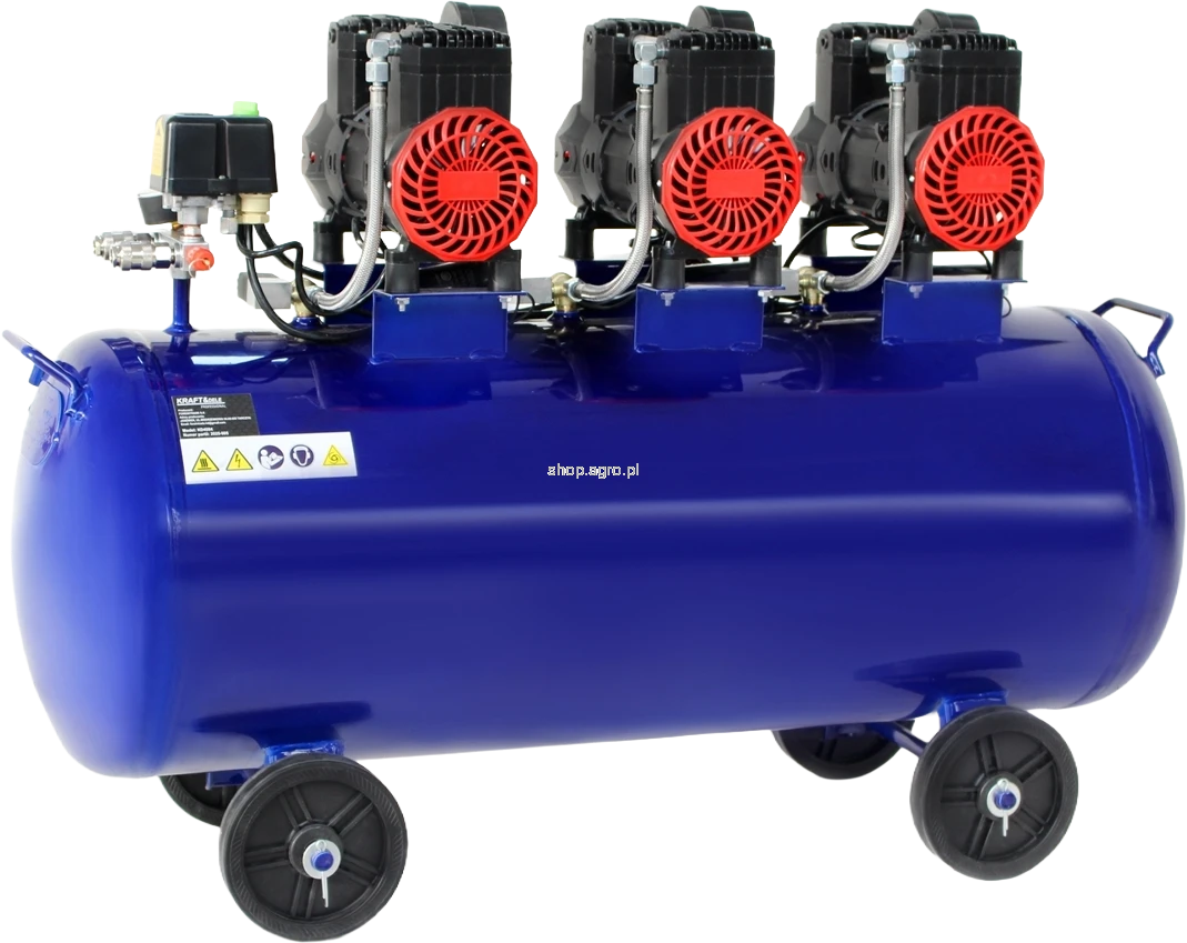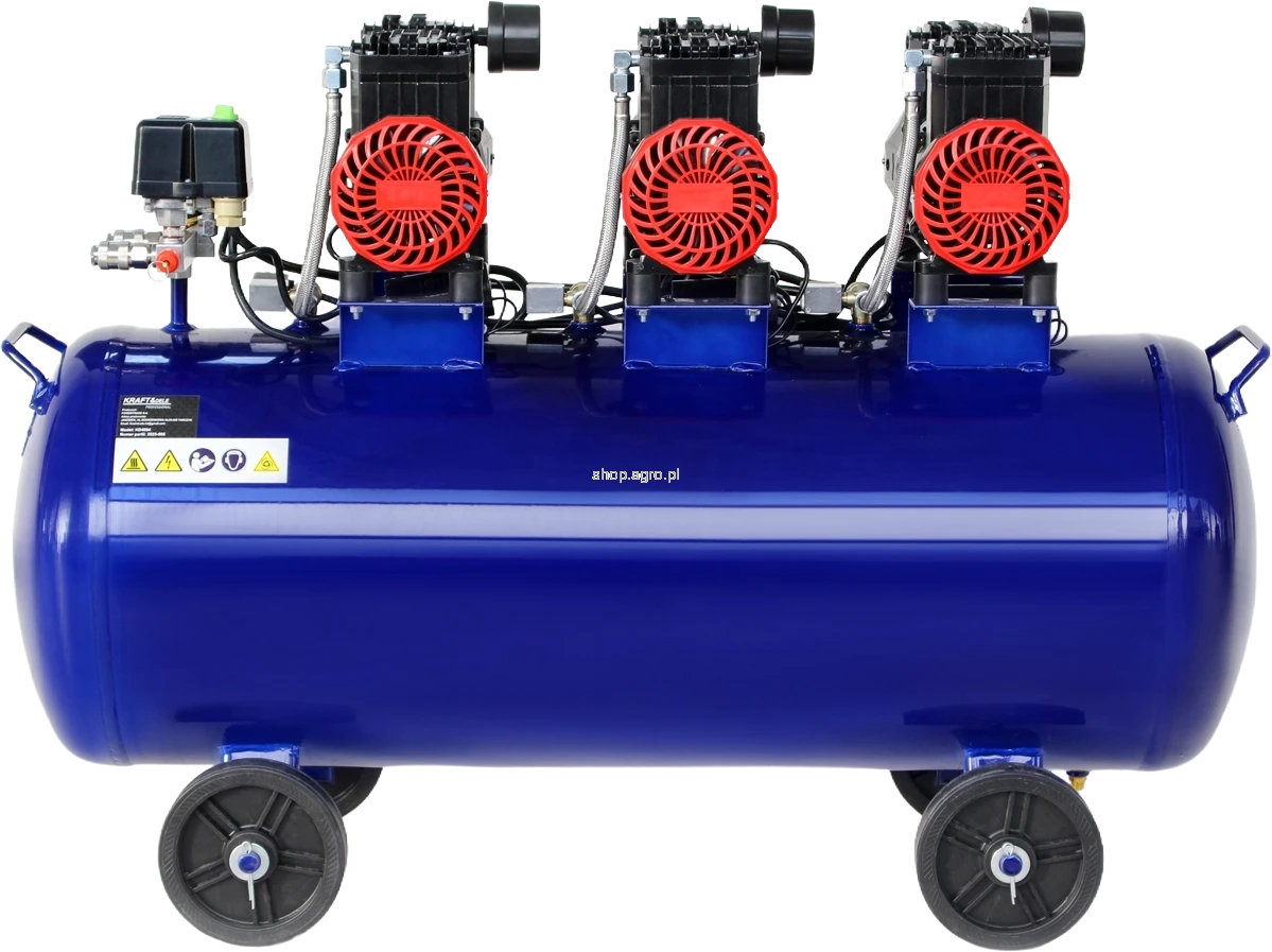 Kompresor bezolejowy; sprężarka bezolejowa; kompresor 100L; sprężarka 100l; kompresor 660 L/min; sprężarka 660l/min; kompresor 6000W; kompresor 3x2000W; kompresor 230V; cichy kompresor; kompresor warsztatowy;