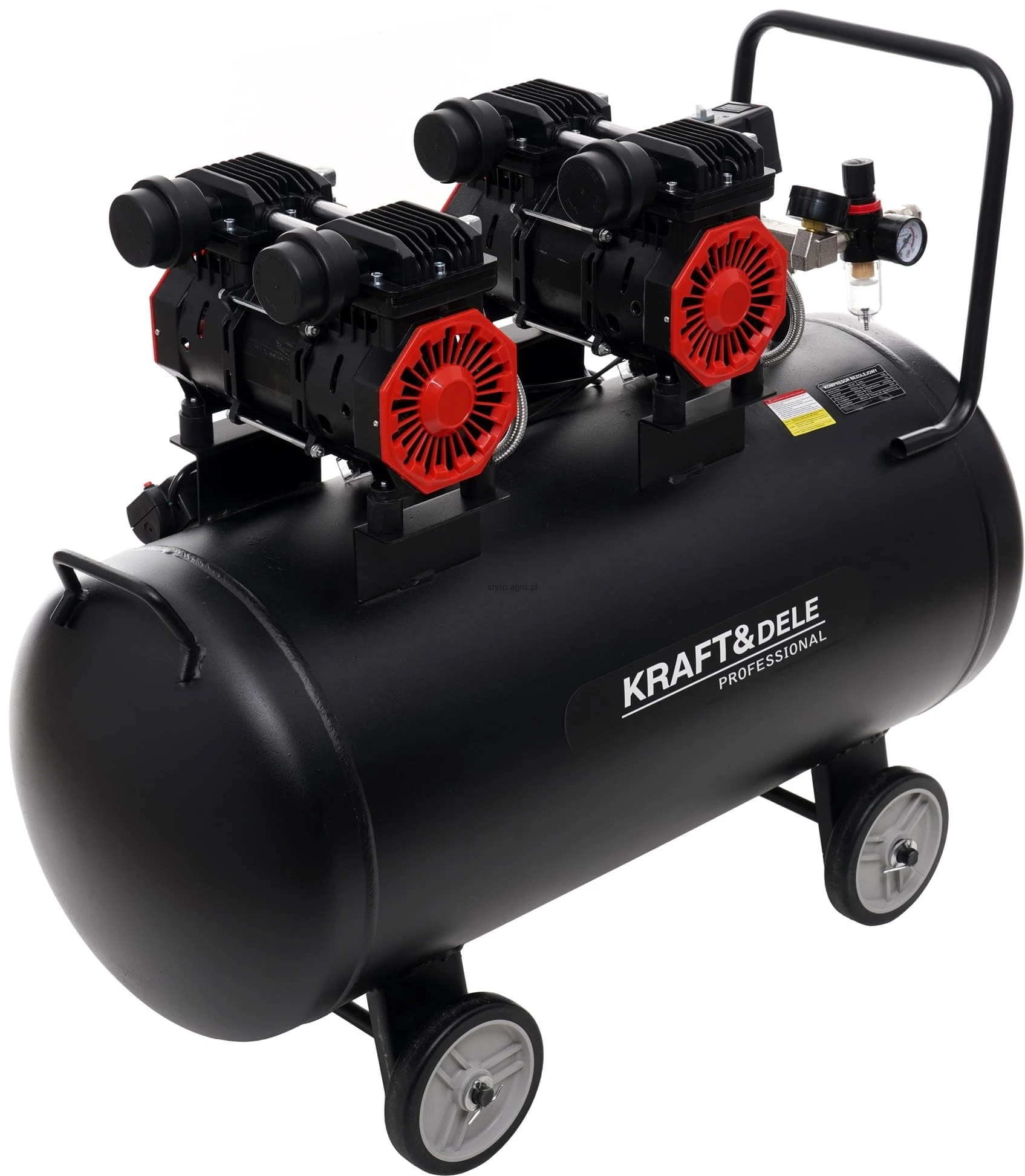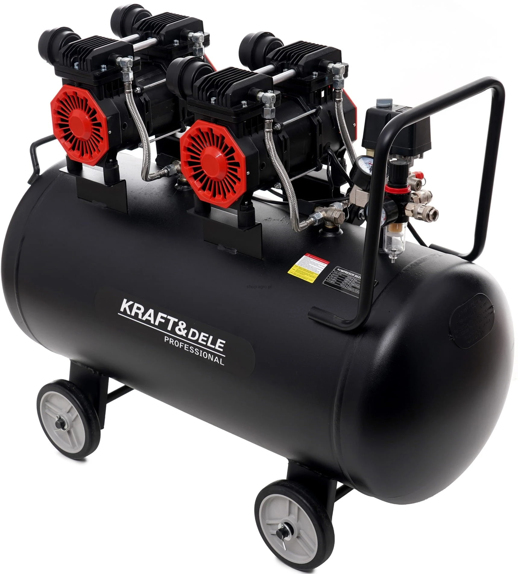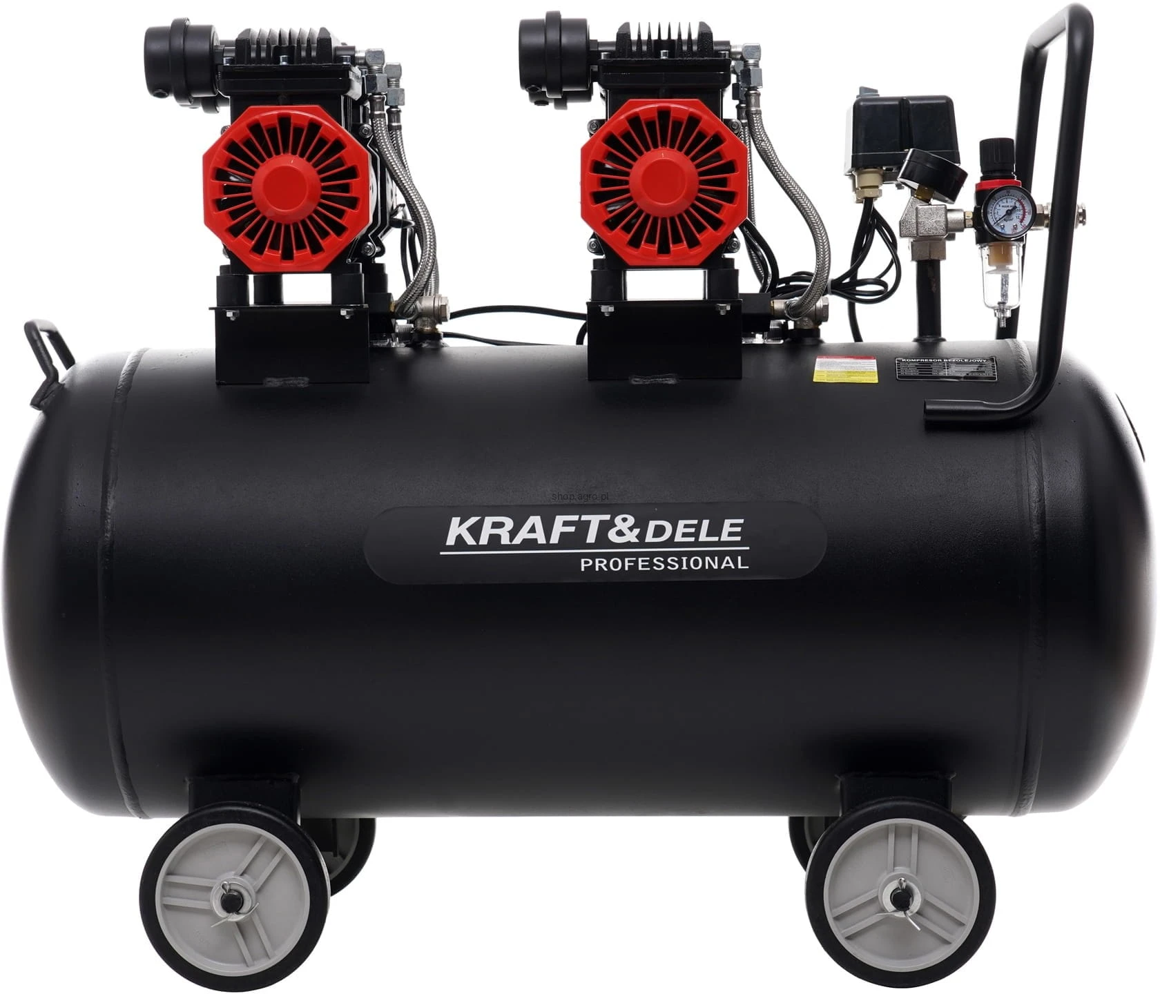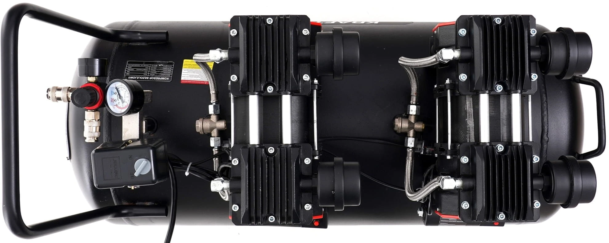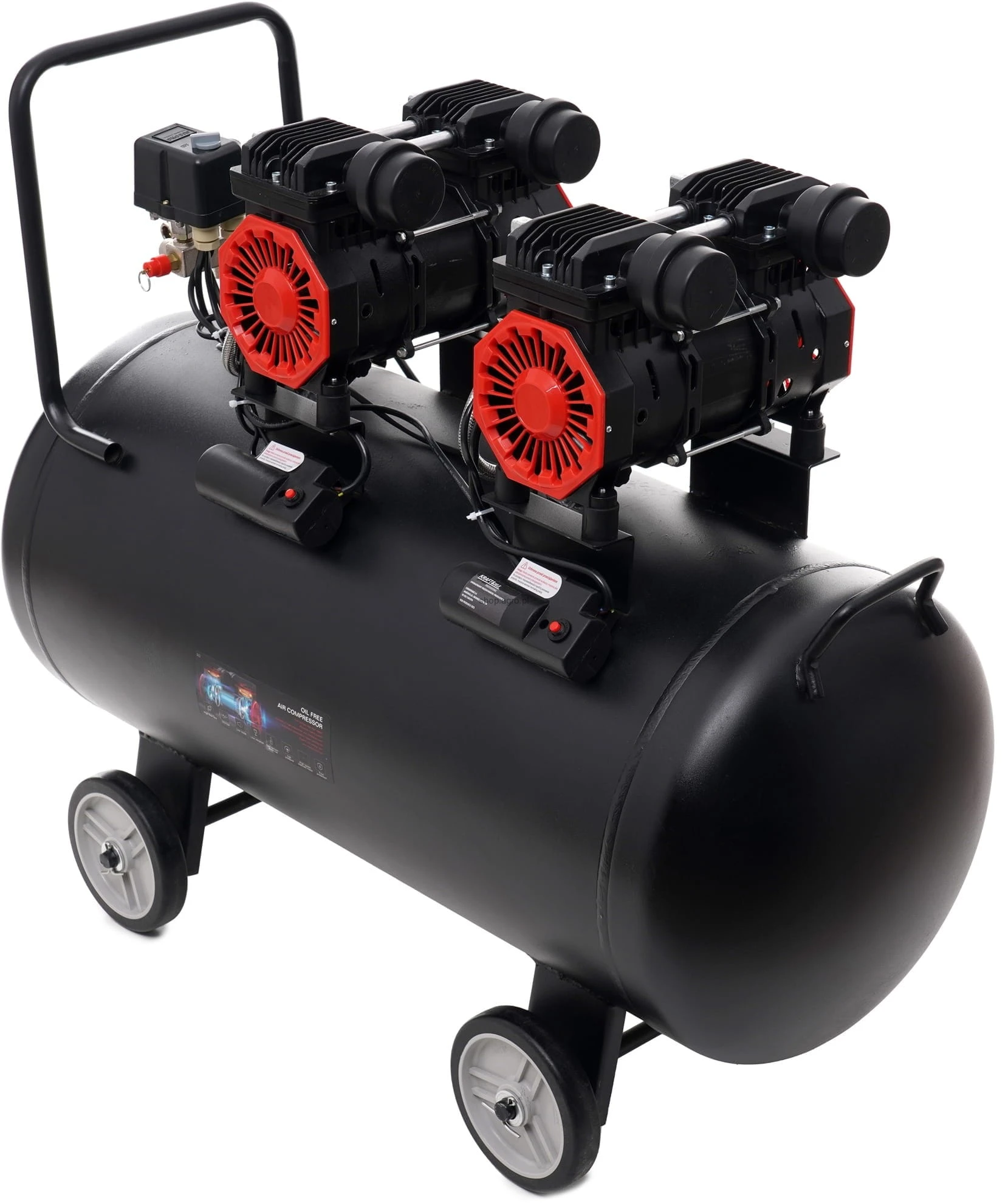 Kompresor bezolejowy 100L; sprężarka bezolejowa 100l; kompresor 2x1500W; sprężarka powietrza 8 bar; kompresor warsztatowy 100 litrów; kompresor do garażu; kompresor 230V;