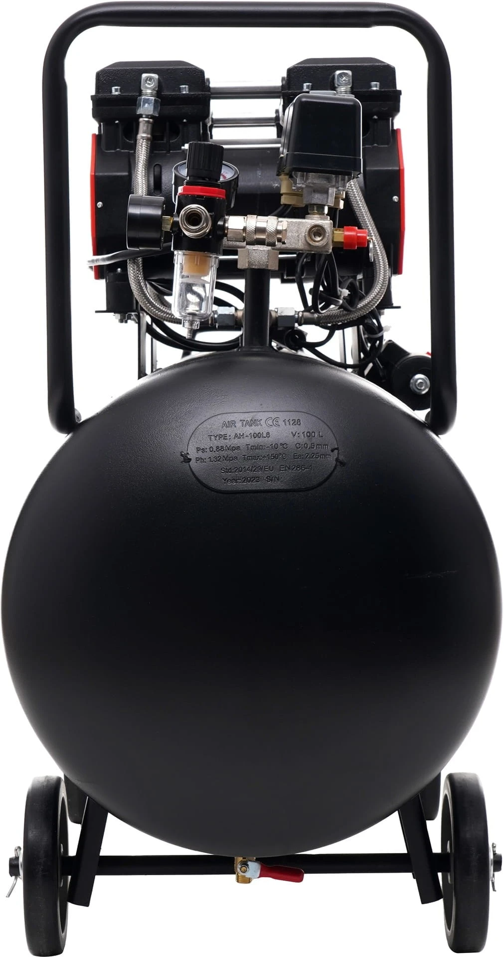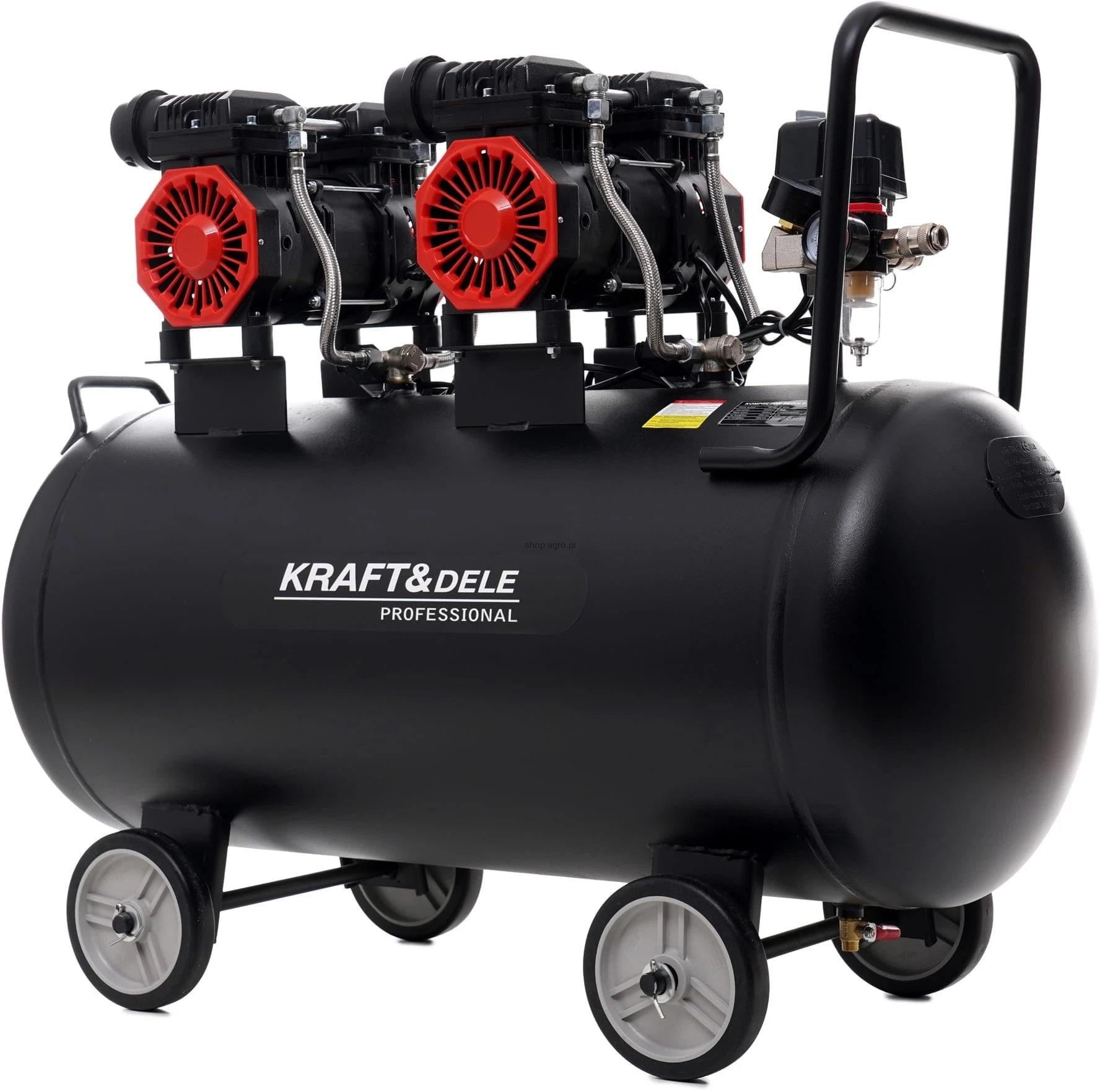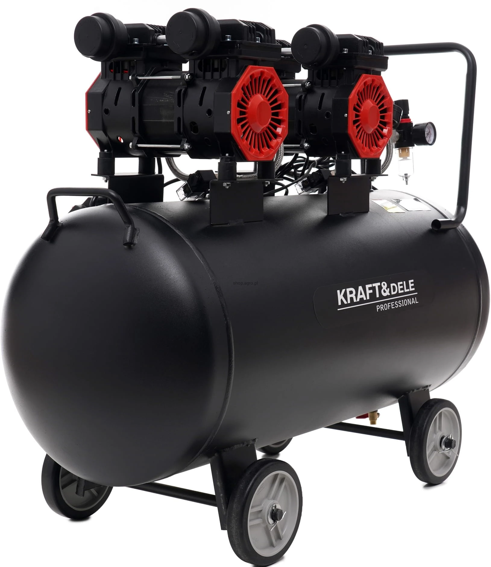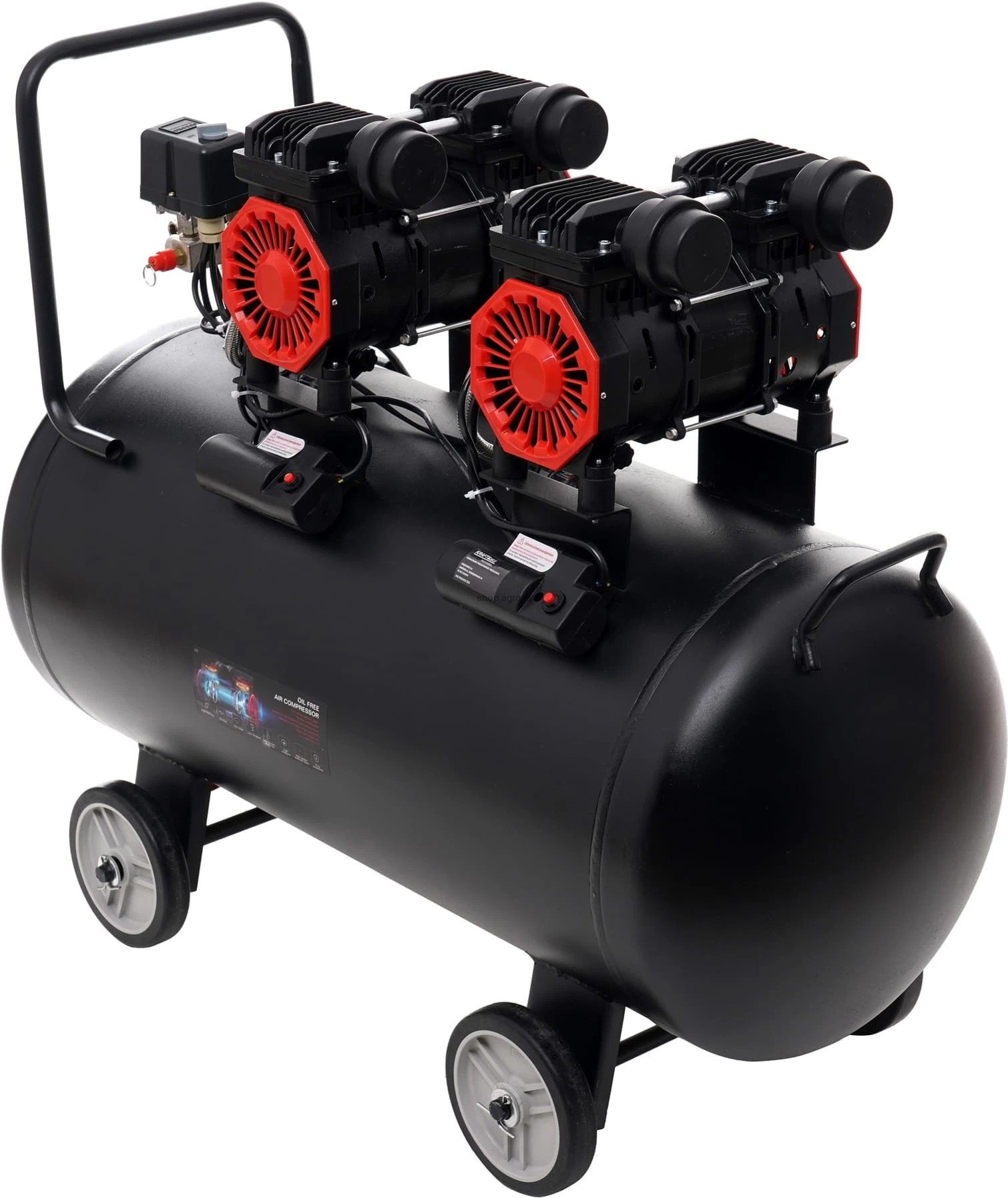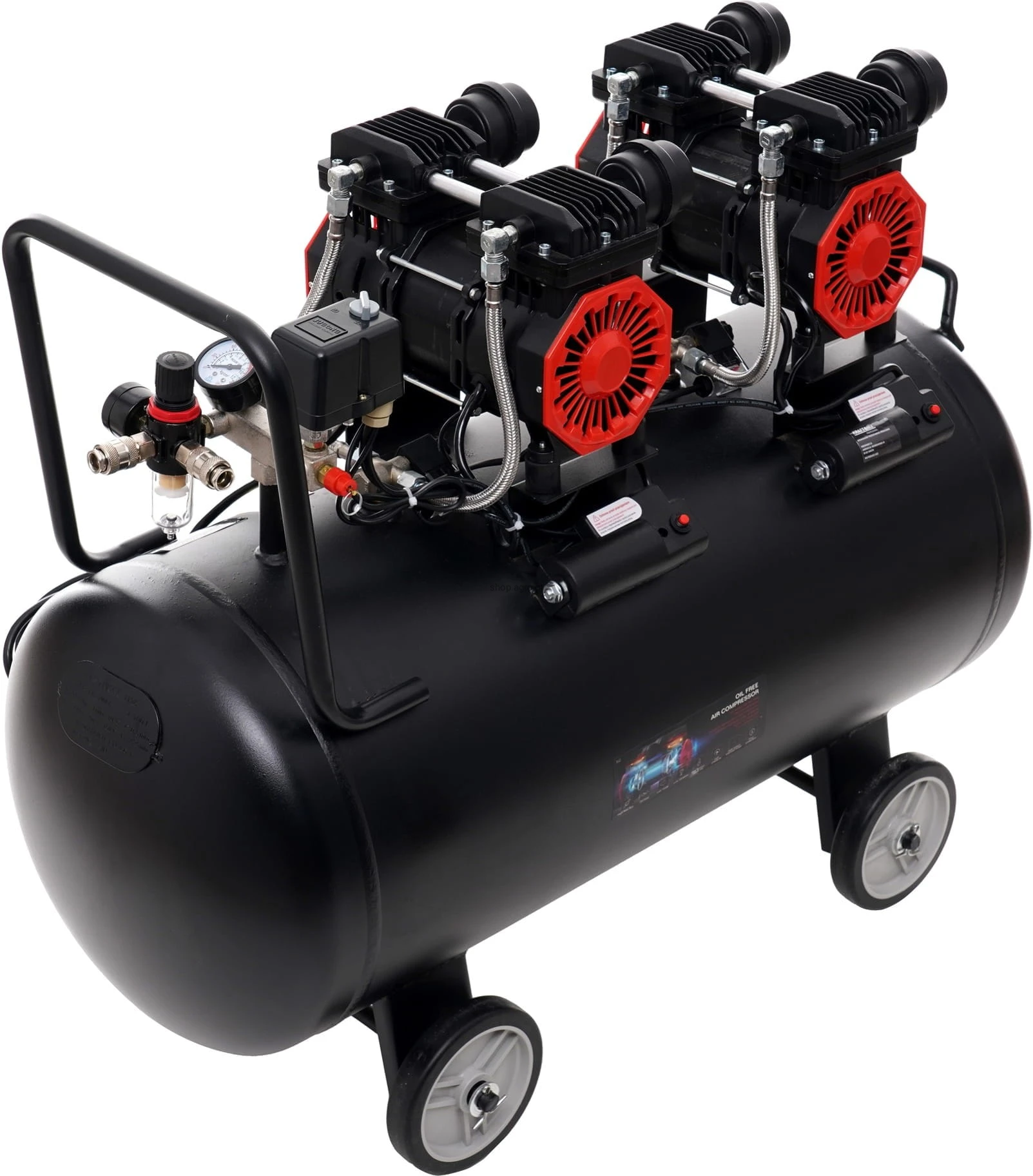 Kompresor bezolejowy 100L; sprężarka bezolejowa 100l; kompresor 2x1500W; sprężarka powietrza 8 bar; kompresor warsztatowy 100 litrów; kompresor do garażu; kompresor 230V;