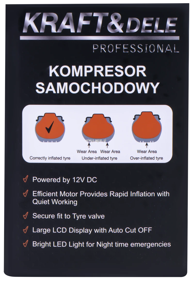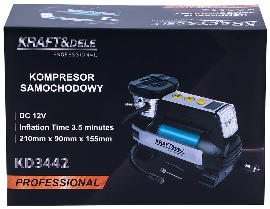Model KD3442 to kompaktowy i wydajny kompresor samochodowy zasilany bezpośrednio z gniazda zapalniczki 12V, stworzony z myślą o szybkim i wygodnym pompowaniu opon, materacy oraz piłek w warunkach drogowych. Urządzenie łączy funkcjonalność, mobilność i łatwość obsługi, dzięki czemu stanowi niezastąpione wyposażenie każdego kierowcy.