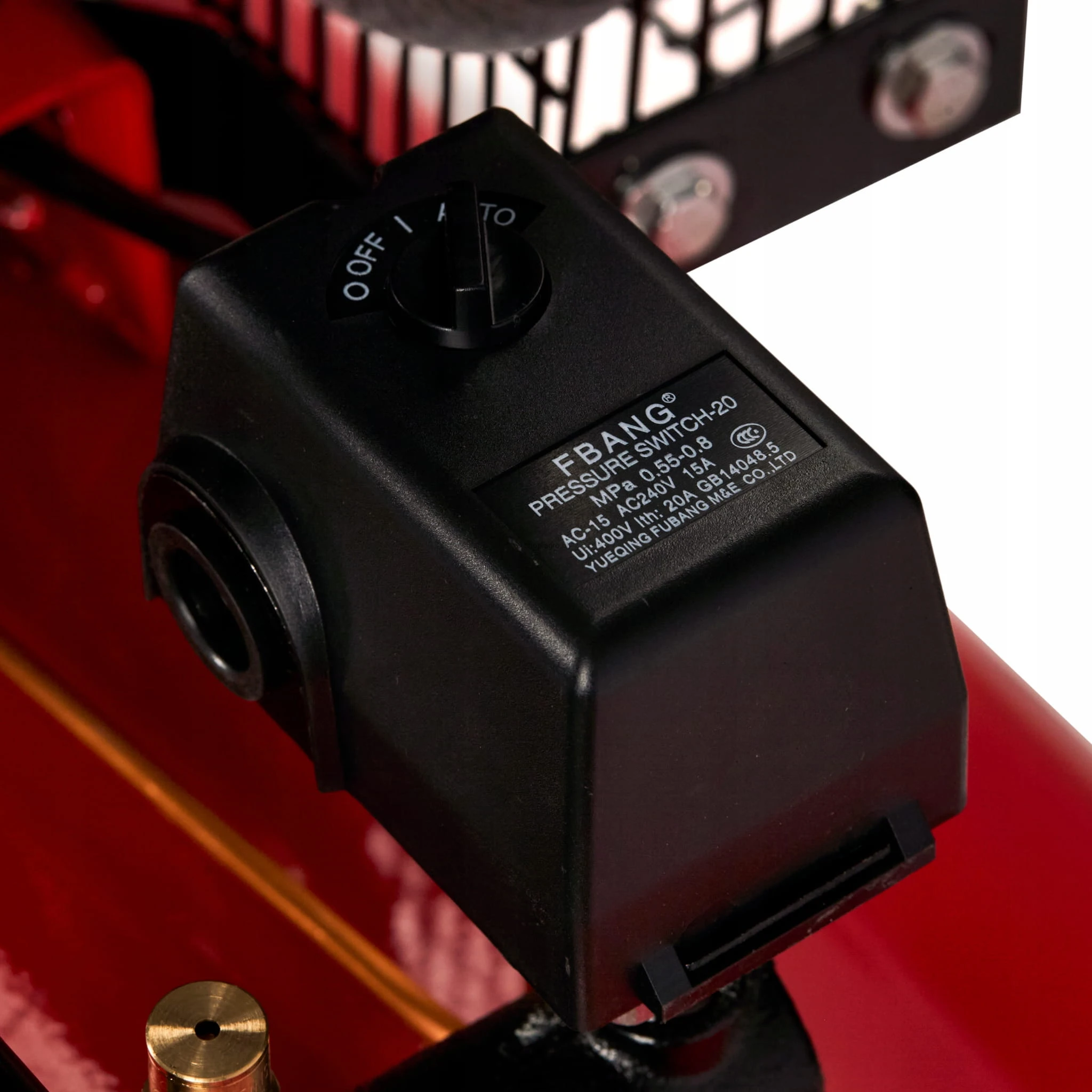 Zabezpieczony pasek transmisyjny oraz łatwo dostępne informacje o parametrach urządzenia! Kompresor wyposażony jest w solidną osłonę, która zapewnia bezpieczeństwo i łatwą obsługę.