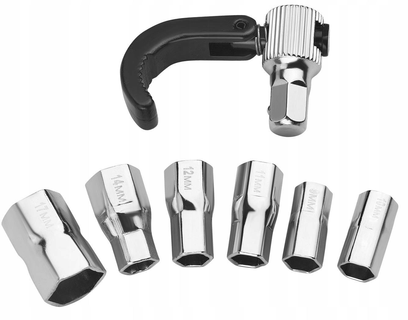 Kompleksowy 8-częściowy zestaw zawiera klucz do kranu, głowica hakowa i 6 nasadek o wymiarach: