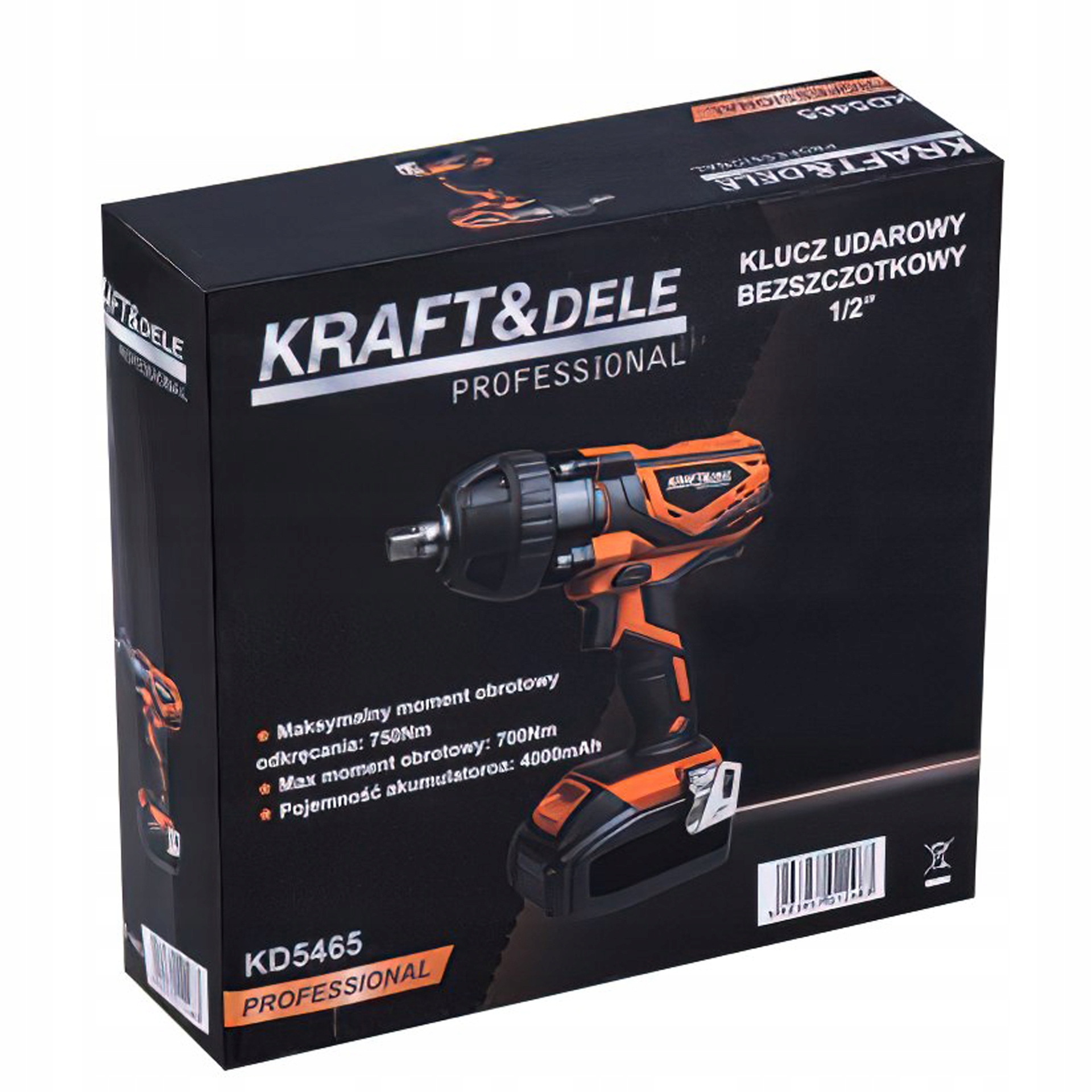 Klucz Udarowy 1/2" HEX Bezszczotkowy Akumulatorowy 21V 750Nm Kraft&Dele
