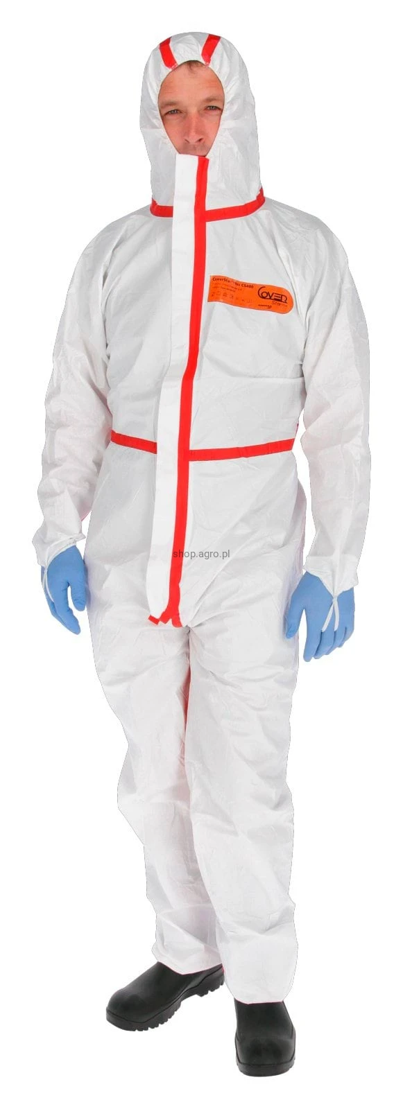 - szczelny kombinezon chroniący przed chemikaliami KAT III, typ 4B, 5B i 6B, odpowiedni do stosowania z pestycydami