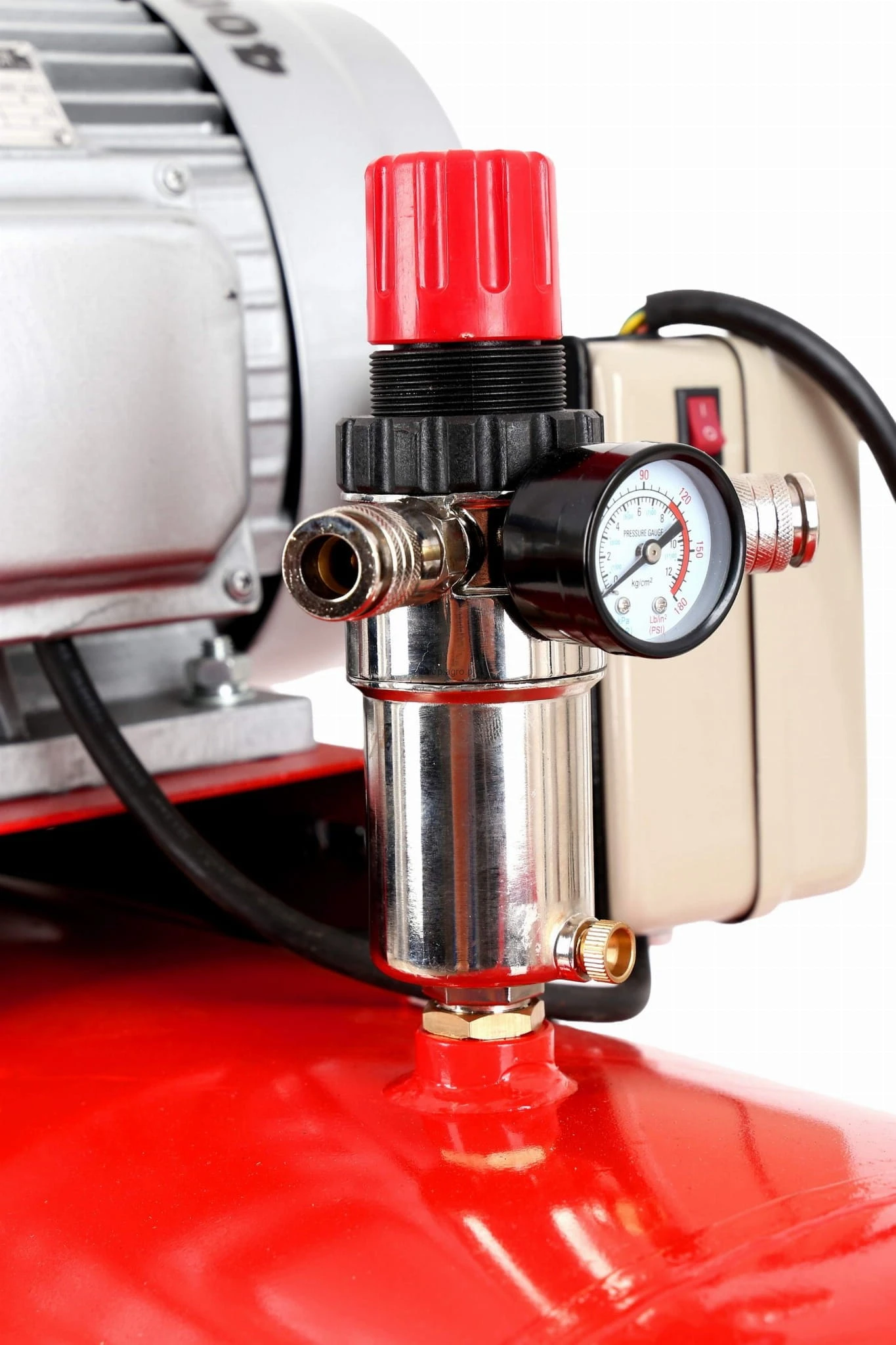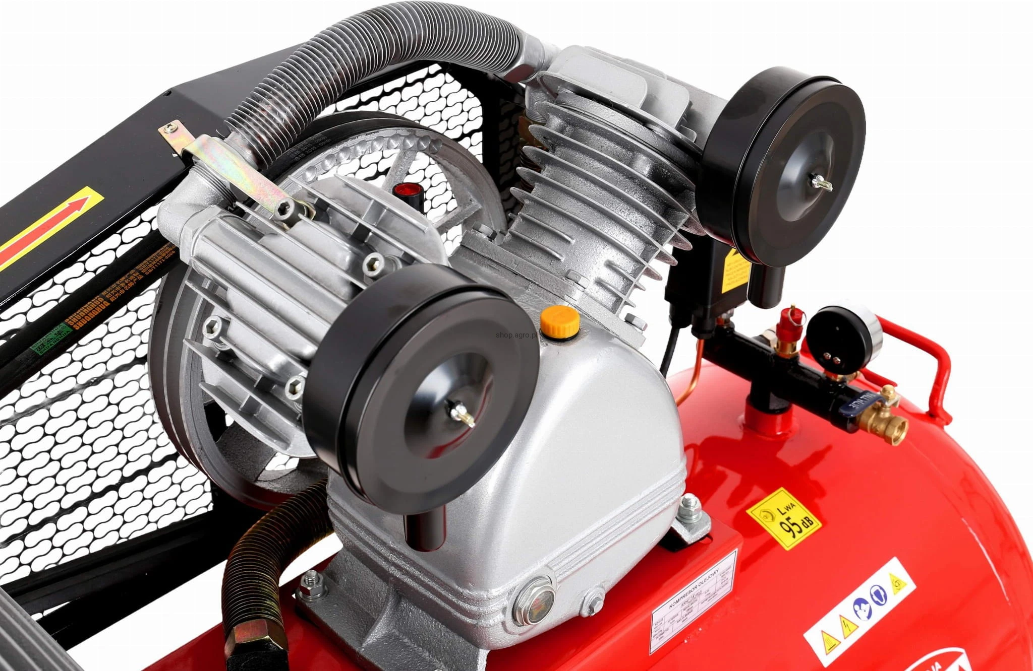 Sprężarka doskonale sprawdza się podczas obsługi narzędzi pneumatycznych takich jak pompowanie, przedmuchiwanie, czyszczenie czy malowanie powierzchni. Konstrukcja olejowa, wydajna pompa tłokowa oraz skuteczne chłodzenie powietrzem dzięki szerokiemu ożebrowaniu zapewniają stabilną pracę i efektywność działania. Wbudowany reduktor ciśnienia umożliwia precyzyjne ustawienie parametrów pracy, a dwa czytelne manometry pozwalają na wygodną kontrolę ciśnienia. Mobilność urządzenia zwiększają solidne koła transportowe, które ułatwiają przemieszczanie kompresora.