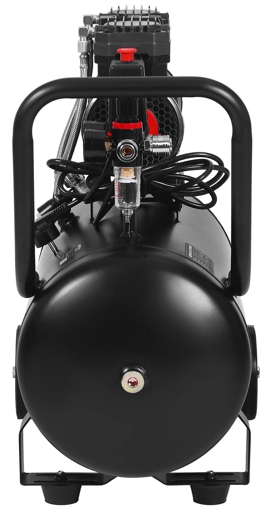 Dzięki silnikowi 2500W i maksymalnej wydajności 290 l/min, kompresor szybko napełnia narzędzia powietrzne, zapewniając ciągłość pracy. Solidny metalowy uchwyt oraz duże kółka ułatwiają transport urządzenia. Dwa czytelne manometry, cicha praca 70 dB oraz zabezpieczenie przed przeciążeniem gwarantują komfort i bezpieczeństwo użytkowania. Dodatkowy odwadniacz z reduktorem ciśnienia umożliwia precyzyjną kontrolę sprężonego powietrza.