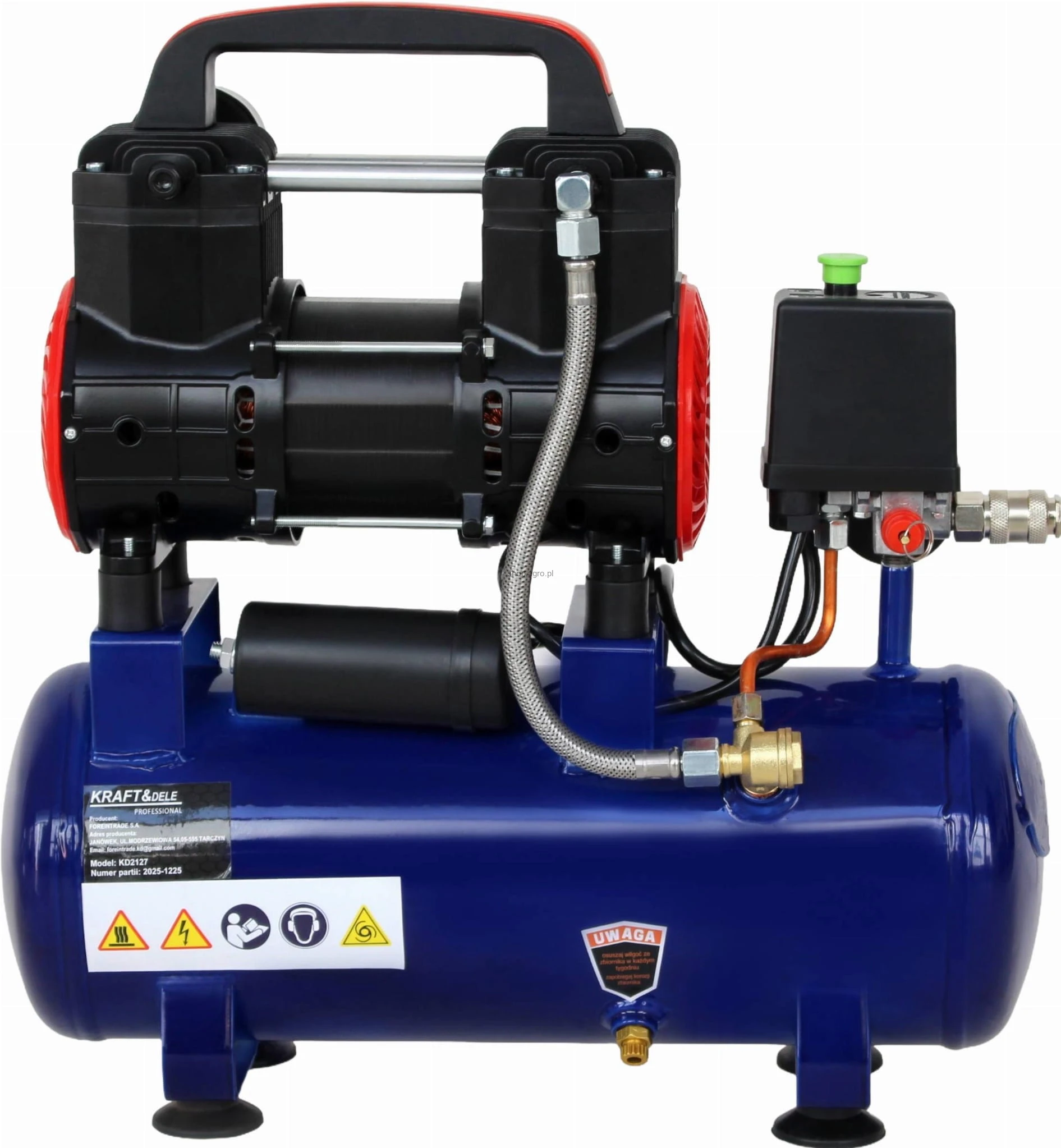 Kompresor bezolejowy; sprężarka bezolejowa; kompresor 9L; sprężarka 9L; kompresor 230V; sprężarka 230V; kompresor 1200W; sprężarka 1200W; kompresor Kraft&Dele; KD4090;