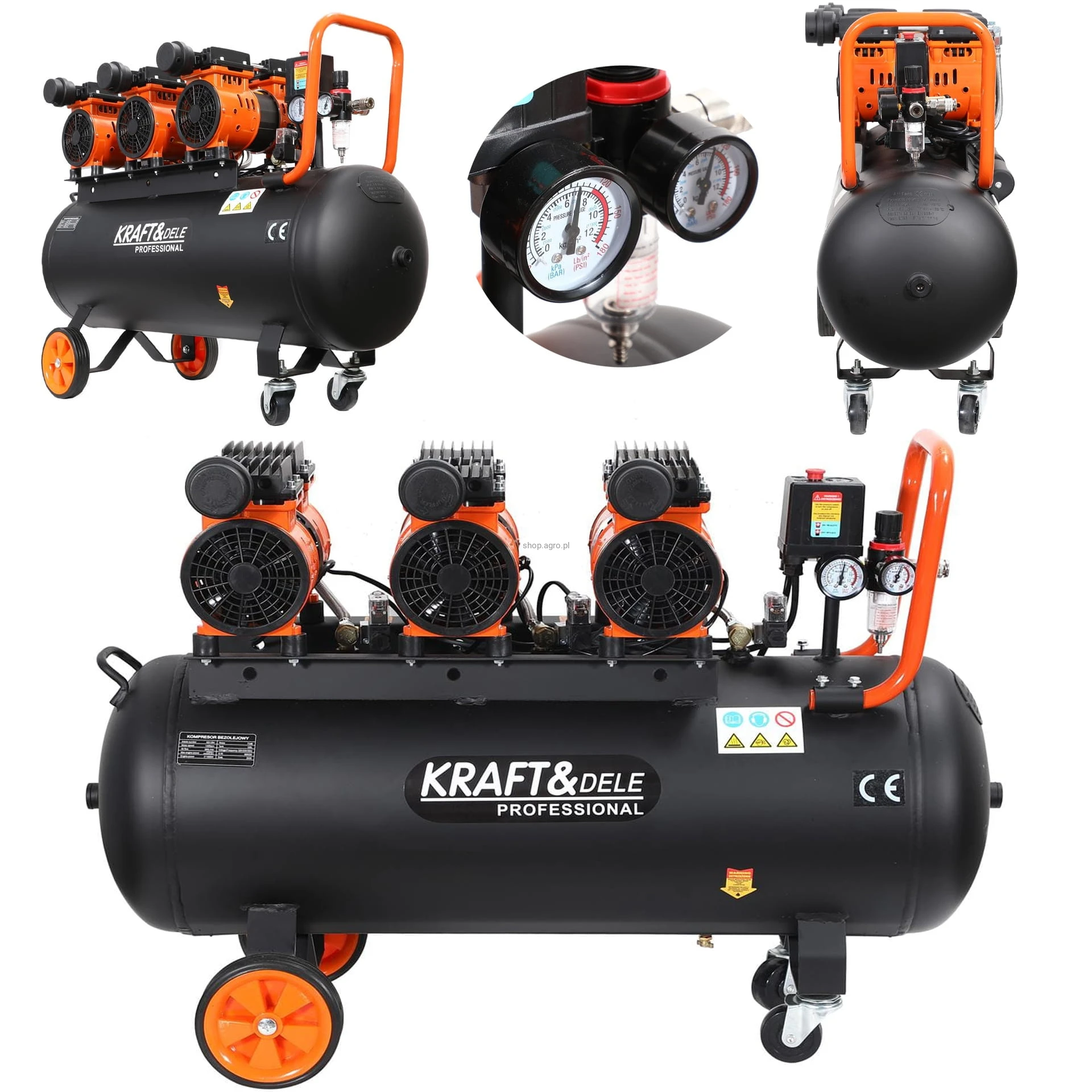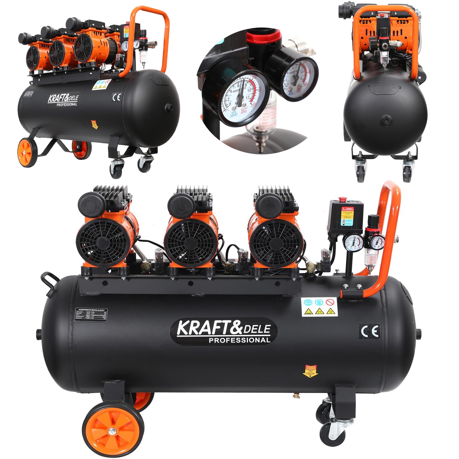 Kraft&Dele cicha sprężarka bezolejowa, 100 litrów 3 x 1500 W, 8 bar