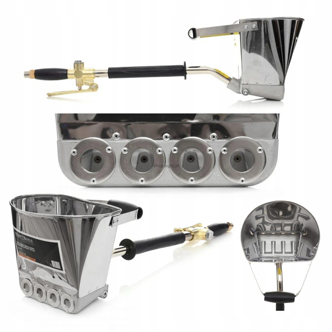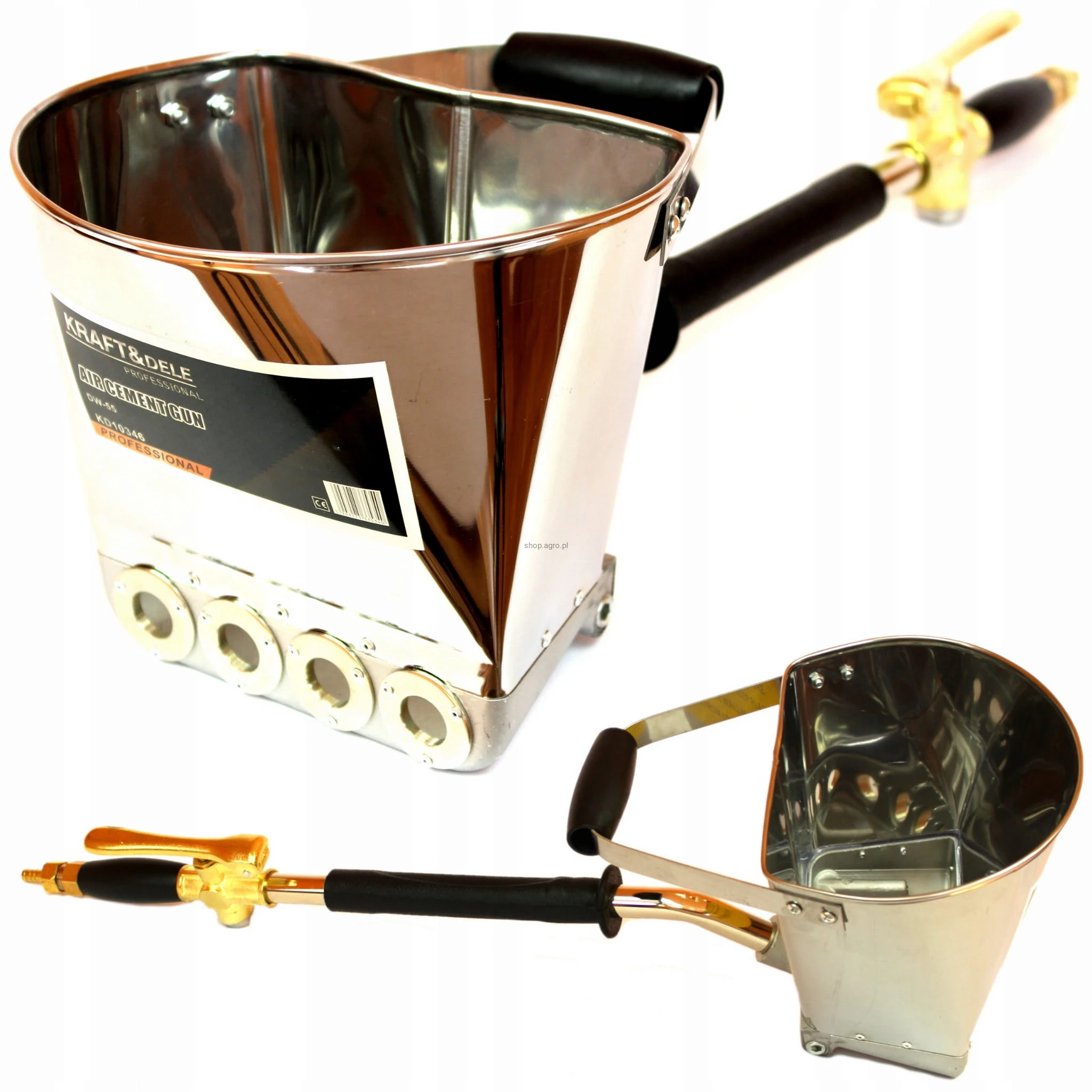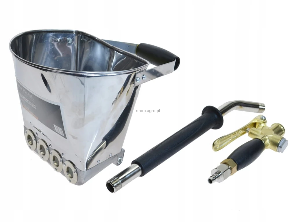 ✔️ Jest to urządzenie zasilane sprężonym powietrzem, co pozwala na precyzyjne i efektywne nakładanie warstw tynku na różne podłoża.