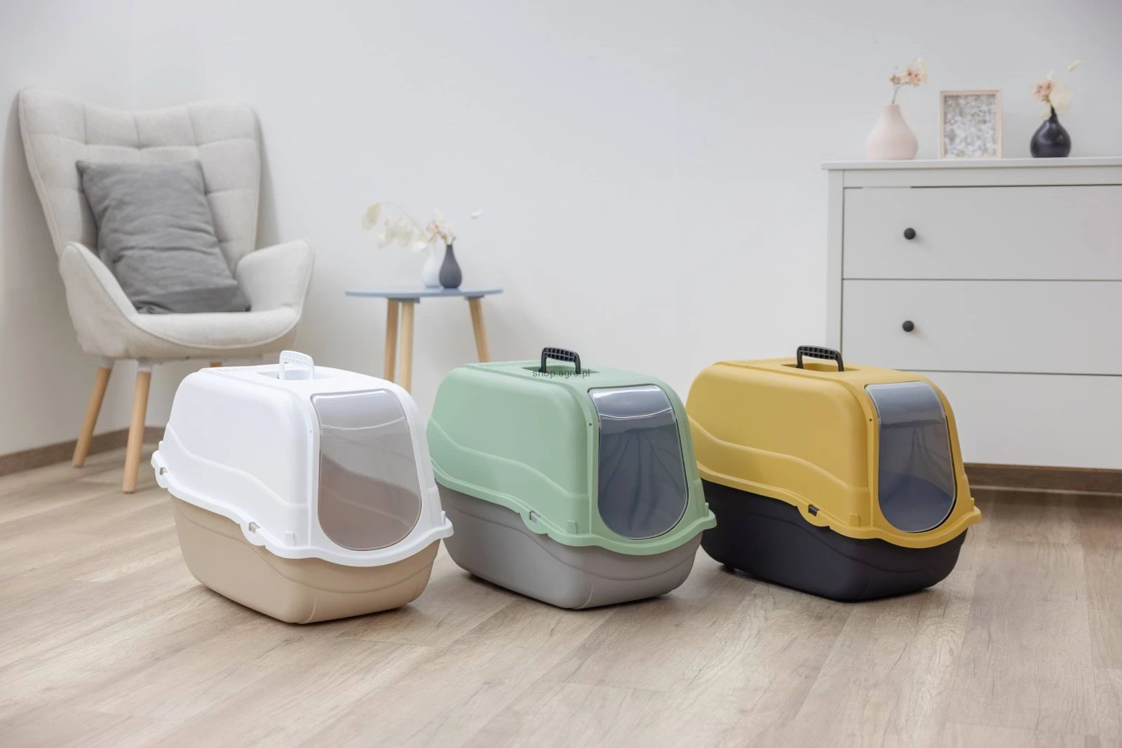 - Dostępna w atrakcyjnych kombinacjach kolorystycznych, kuweta harmonijnie komponuje się z każdym wnętrzem. Idealna dla właścicieli kotów dbających o styl