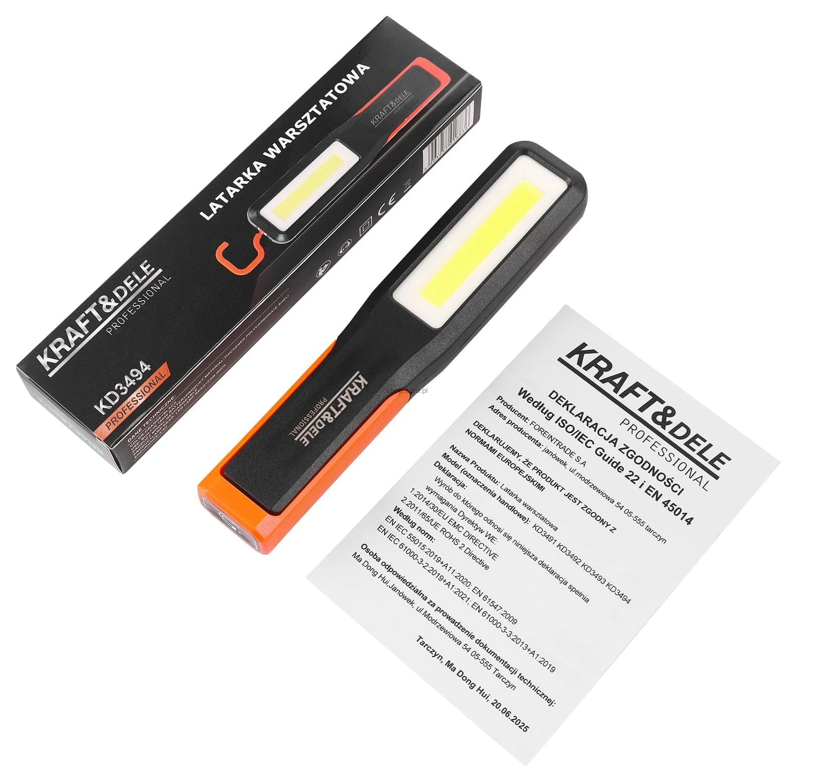 Lampka warsztatowa KRAFT&DELE KD3494 to praktyczne i mobilne źródło światła, które doskonale sprawdzi się zarówno w profesjonalnym warsztacie, jak i w domowych zastosowaniach. Dzięki wbudowanemu akumulatorowi litowo-jonowemu typu 18650 oraz nowoczesnemu panelowi LED, urządzenie zapewnia długą i efektywną pracę bez konieczności stałego podłączenia do sieci.