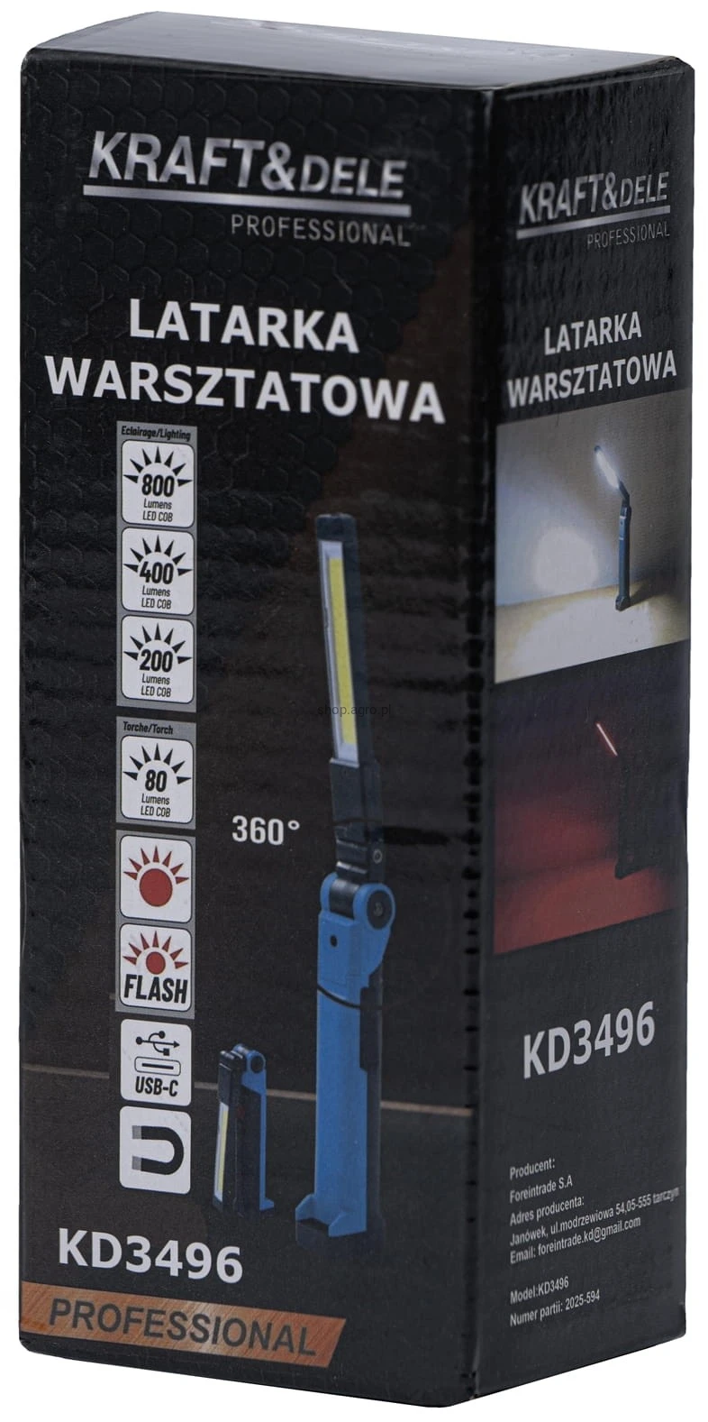 LATARKA WARSZTATOWA LED USB-C 200/400/800LM + ŚWIATŁO OSTRZEGAWCZE KD3496