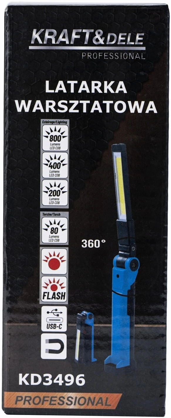 KD3496 to kompaktowa, niezwykle praktyczna latarka warsztatowa marki KRAFT&DELE, która idealnie sprawdzi się zarówno w profesjonalnym serwisie, jak i w domowym garażu. Zastosowanie mocnego światła COB LED oraz klasycznego punktowego LED sprawia, że urządzenie oferuje szeroki zakres zastosowań — od oświetlania dużej przestrzeni roboczej po precyzyjne doświetlanie detali.