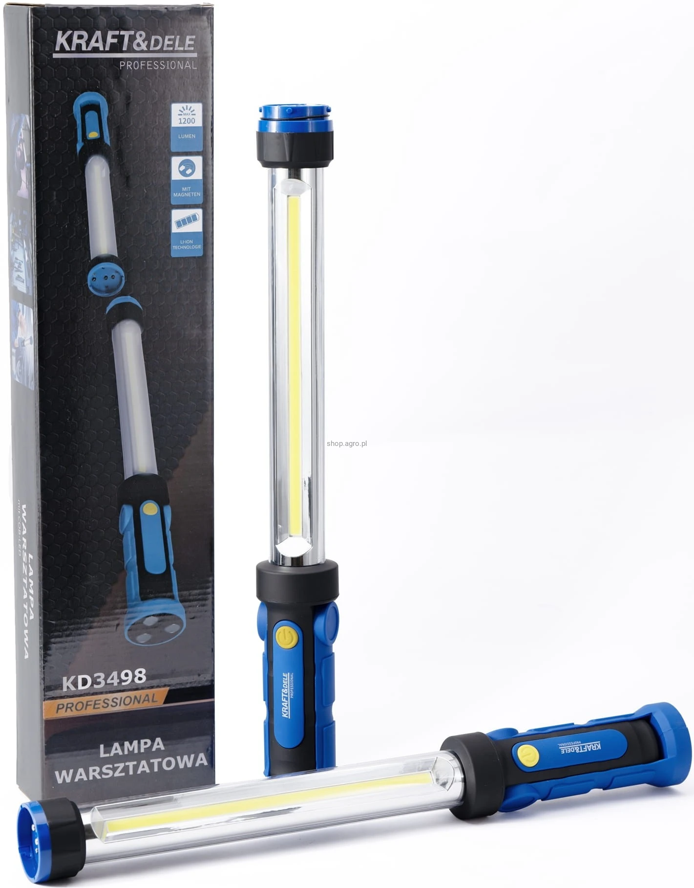 latarka podwójna; latarka warsztatowa; lampa robocza COB; latarka magnetyczna; latarka z hakiem; oświetlenie warsztatowe; lampa inspekcyjna długa; latarka 1200 lumenów;