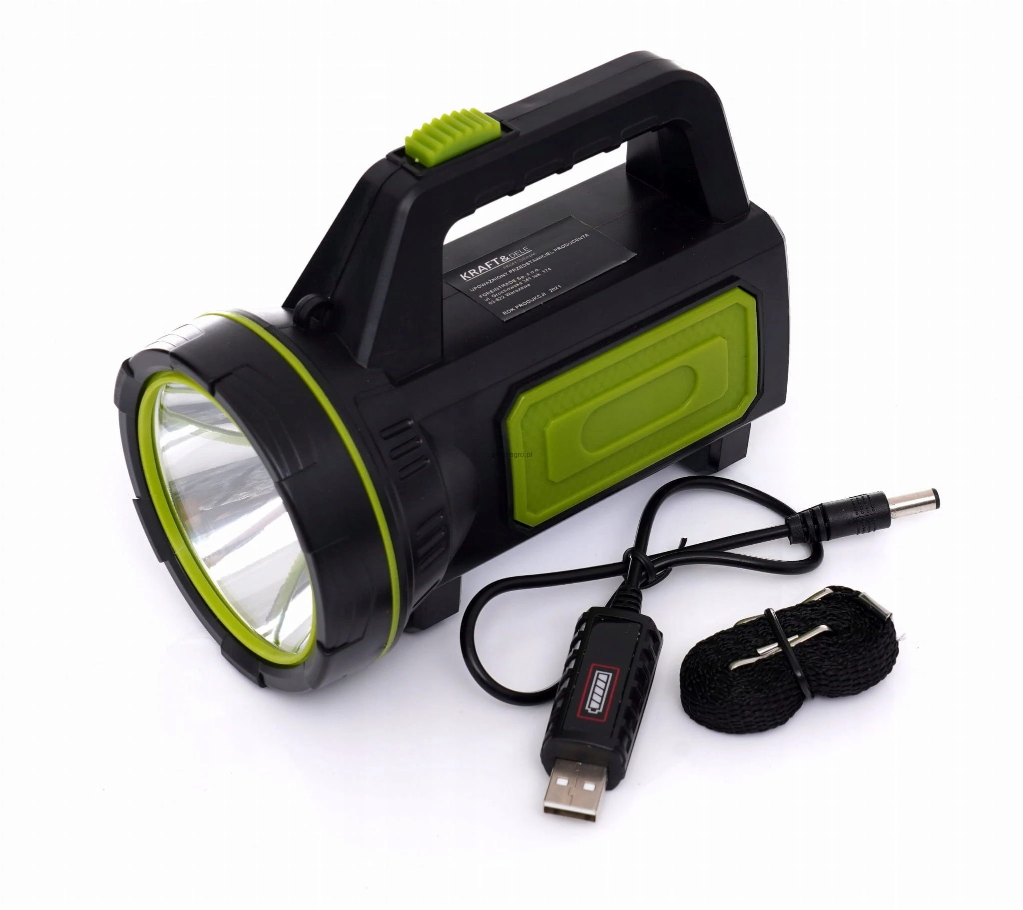 Latarka Boczna Reflektor Szperacz Bateria USB Kraft&Dele 1200 lm LED T6 10W