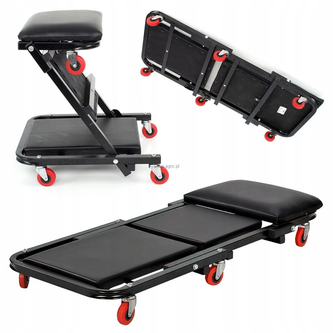 Leżak Warsztatowy Kółka Siedzisko Składane Leżanka 2w1 360° Kraft&Dele