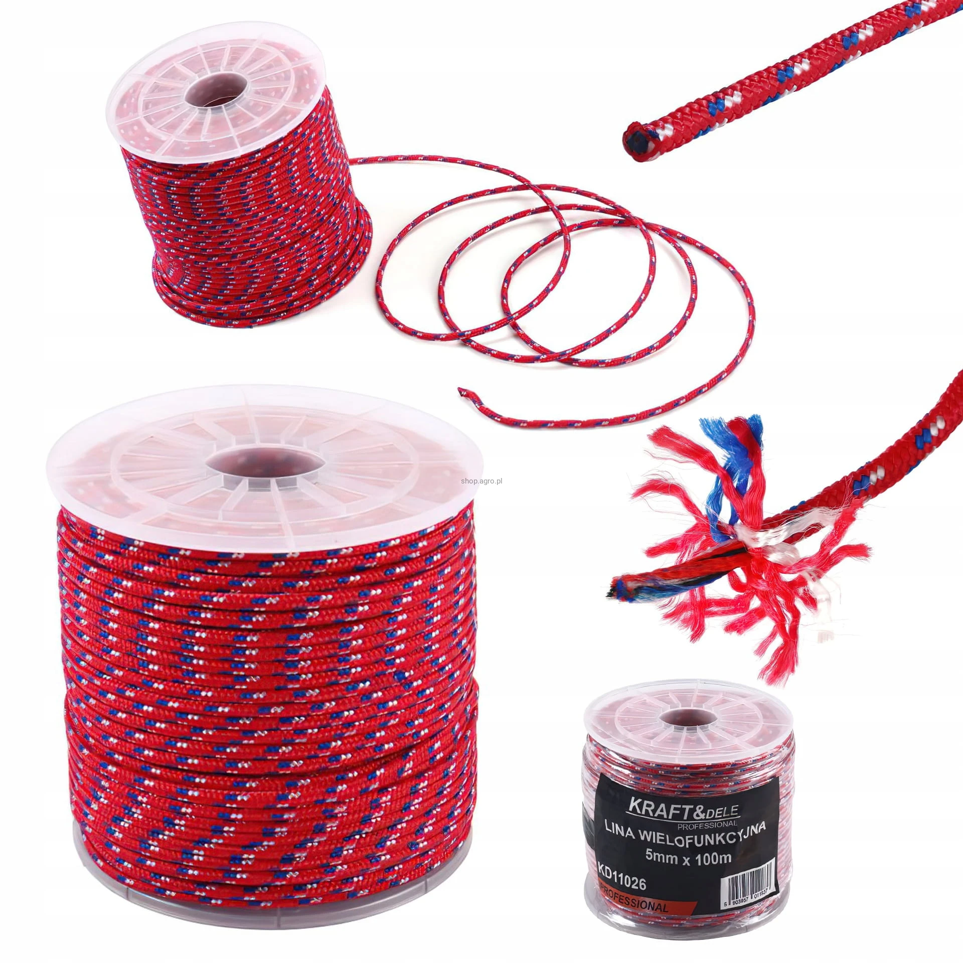 Lina Wielofunkcyjna 5 mm x 100 m Czerwona Ogrodowa Namiotu KRAFT&DELE