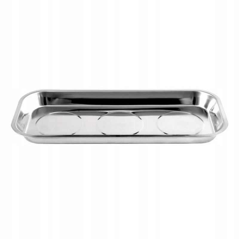 - Wyposażona w 3 mocne magnesy, dzięki którym śrubki, nakładki i inne warsztatowe elementy zostają w jednym miejscu. Magnes pozwala na przymocowanie miski w dogodnym miejscu i zabezpiecza miskę i części w niej przechowywane przed upadkiem i rozsypaniem.
