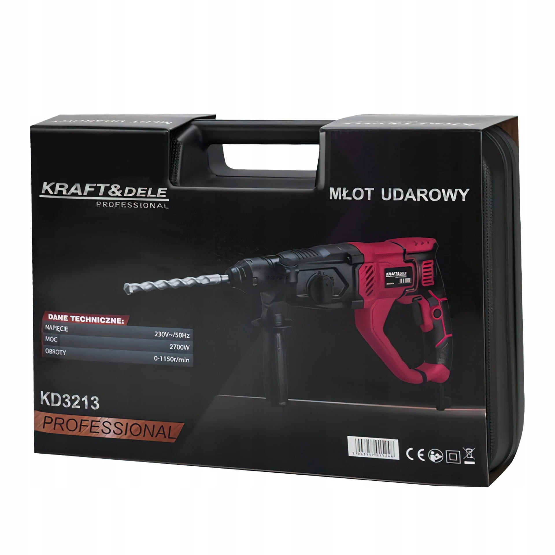 Młot Udarowy 2600W 230V SDS-PLUS 4J 5200 BPM 1470 RPM 3w1 Kraft&Dele