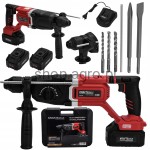 Super mocny, kompaktowy i lekki młot młot pneumatyczny zasilany baterią z mocowaniem SDS-PLUS, ze sprzęgłem bezpieczeństwa. Jest wyposażony w zupełnie nową technologię pneumatyczną, która bardzo optymalizuje i wzmacnia energię oraz niezawodność części zużycia. Zupełnie nowy system umożliwiający automatyczne dostosowanie ciśnienia wewnętrznego komory pneumatycznej, aby maksymalnie zoptymalizować wiercenie.