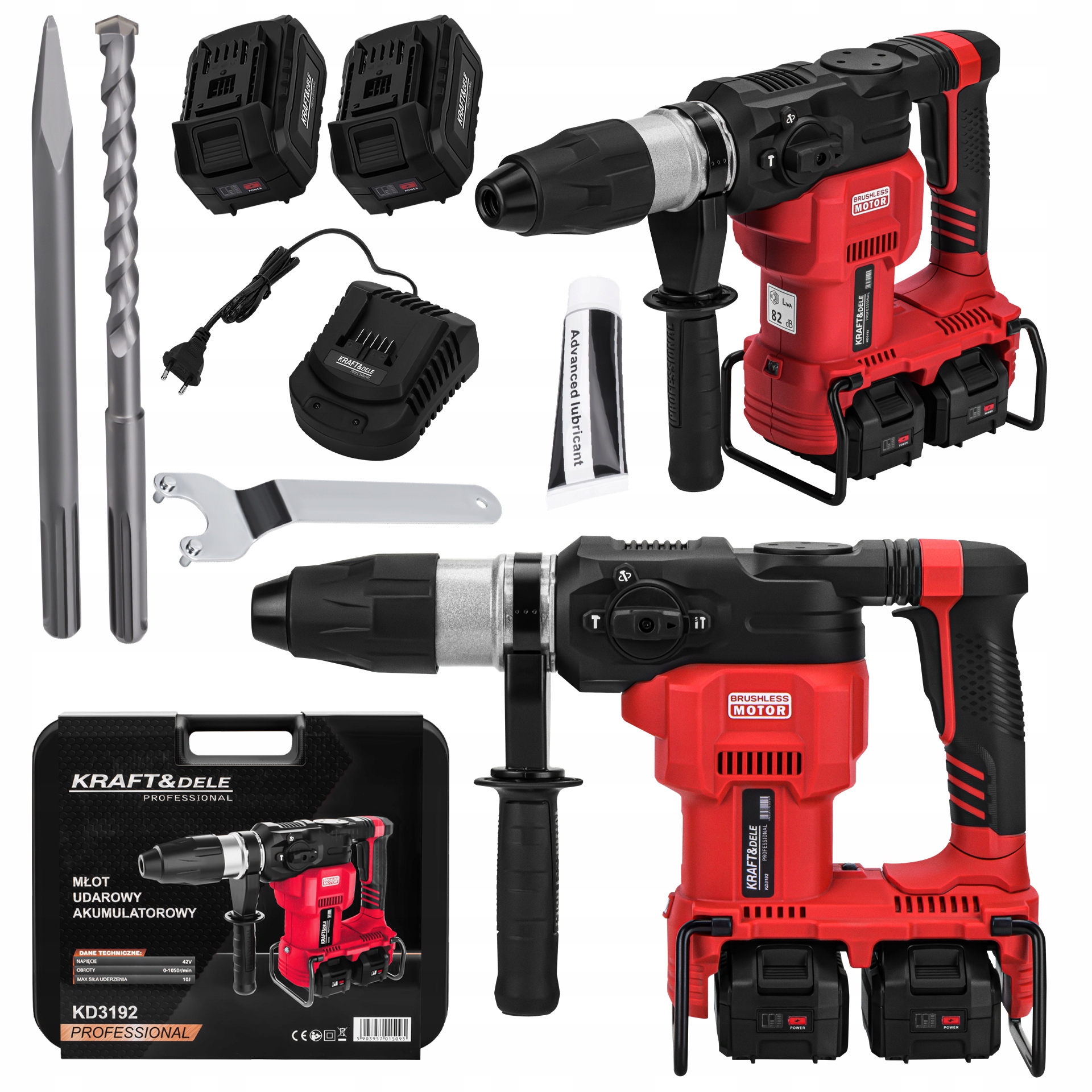 Młot Udarowy SDS Plus 10J Akumulatorowe Zasilanie 2x Bateria 42V Kraft&Dele