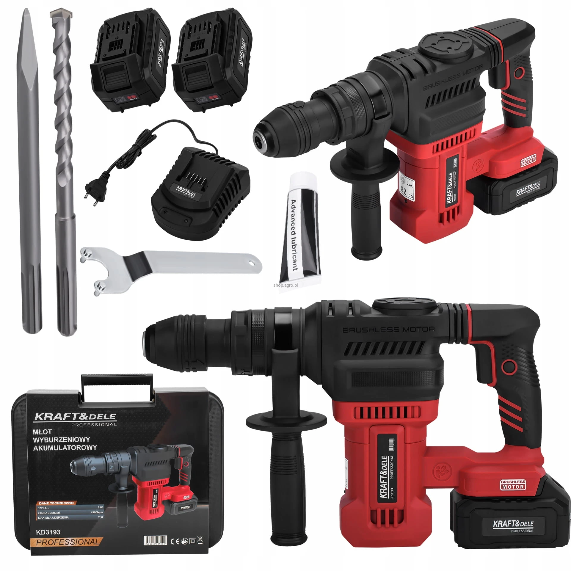 Młot Udarowy SDS Plus 7,5J Akumulatorowe 4Ah 21V Kraft&Dele
