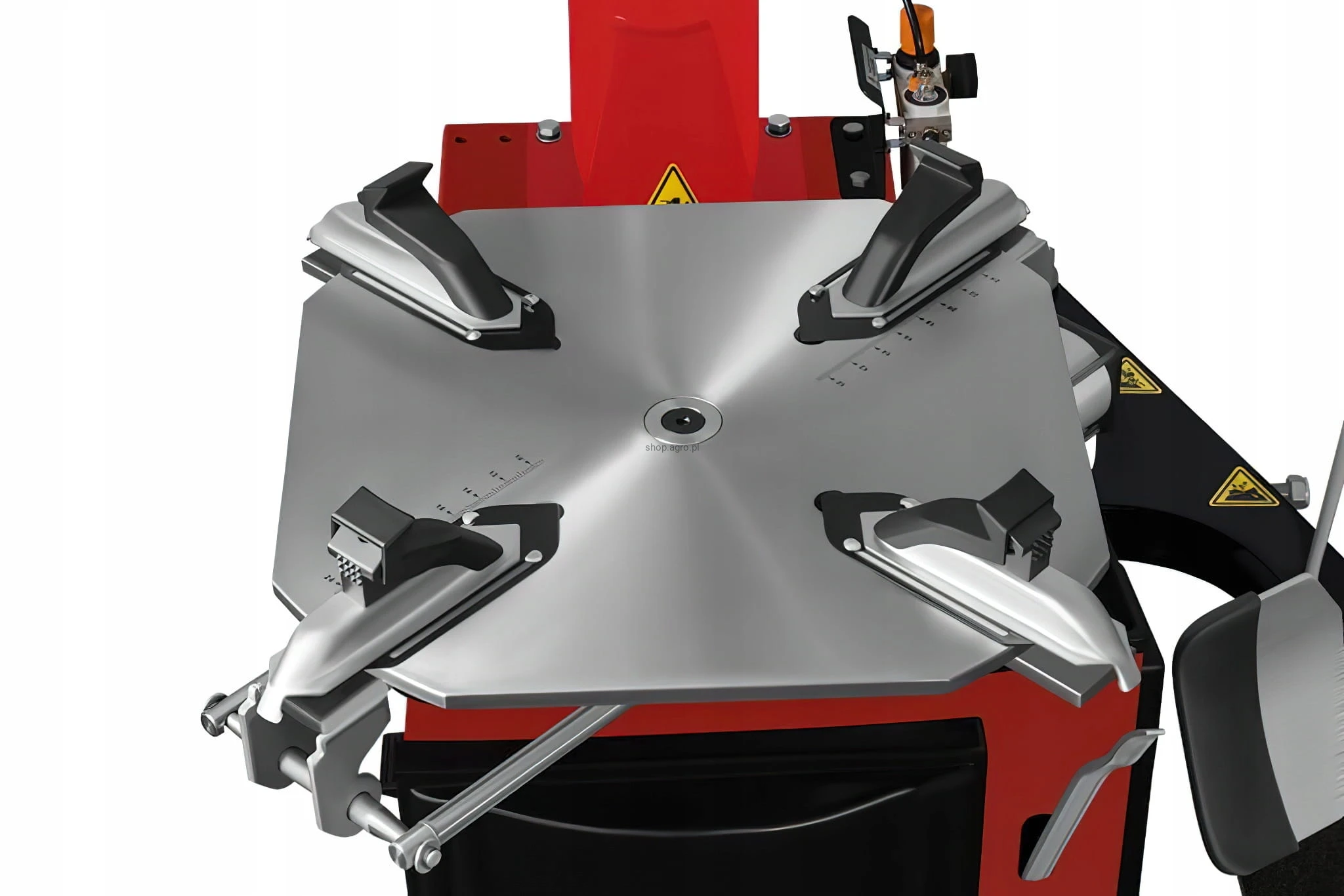 - większym mocniejszym zbijakiem montażownicy z regulowanym ogranicznikiem