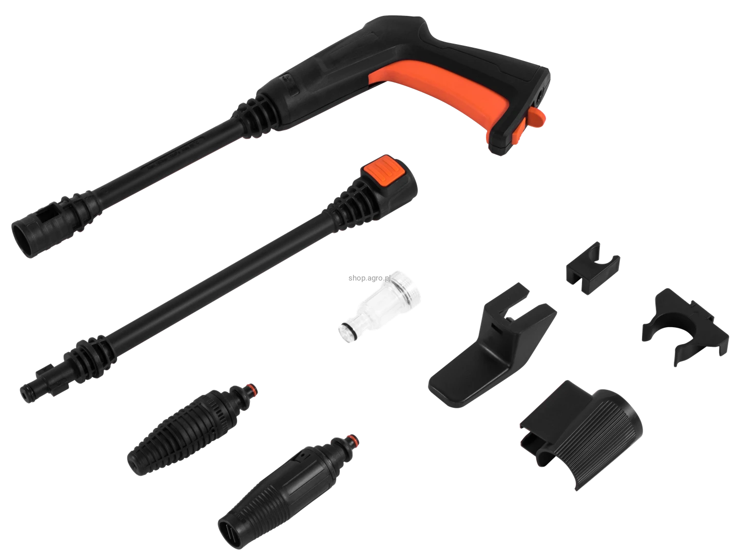 Dzięki dołączonej do zestawu pianownicy możliwe jest łatwe nanoszenie piany czyszczącej, a solidna konstrukcja gwarantuje trwałość i niezawodność pracy. Myjka KD5380 charakteryzuje się wysokim ciśnieniem roboczym 200 bar i maksymalnym ciśnieniem 220 bar, przepływem do 8 L/min oraz klasą bezpieczeństwa IPX5. Duże koła, długa, wyprofilowana rączka oraz lekka konstrukcja zapewniają bardzo łatwy transport urządzenia, natomiast blokada spustu pistoletu zwiększa wygodę i bezpieczeństwo pracy.