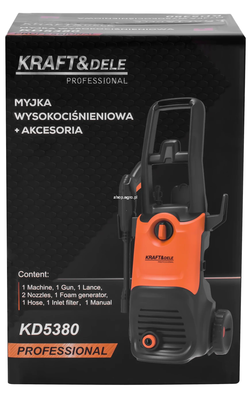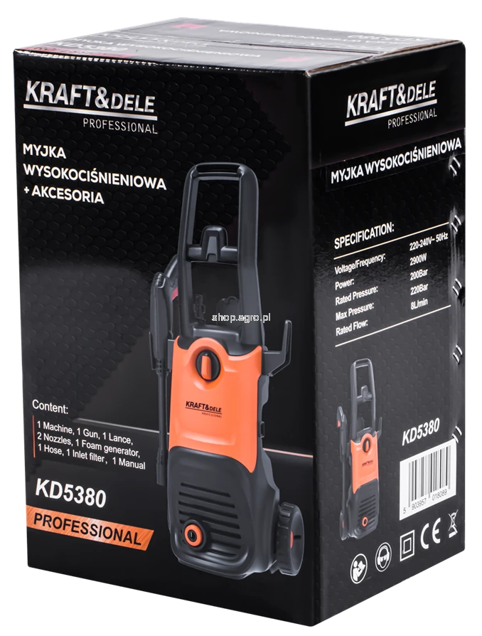 Model KD5380 to profesjonalna myjka wysokociśnieniowa o dużej mocy 2900W, przeznaczona do szybkiego i skutecznego czyszczenia samochodów, tarasów, elewacji i innych powierzchni. Urządzenie łączy wysokie ciśnienie robocze z funkcjonalnością i bezpieczeństwem użytkowania, a przemyślana konstrukcja ułatwia transport i pracę w terenie.