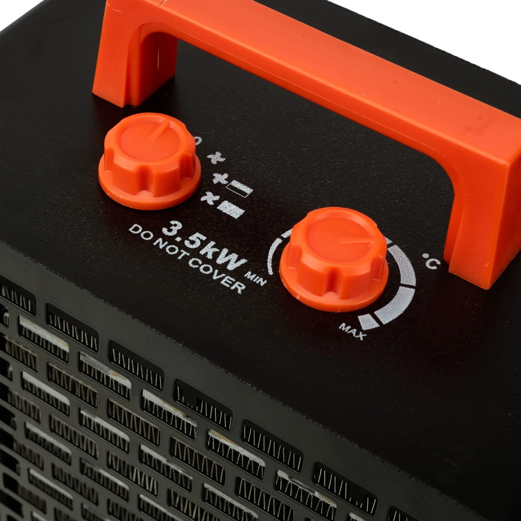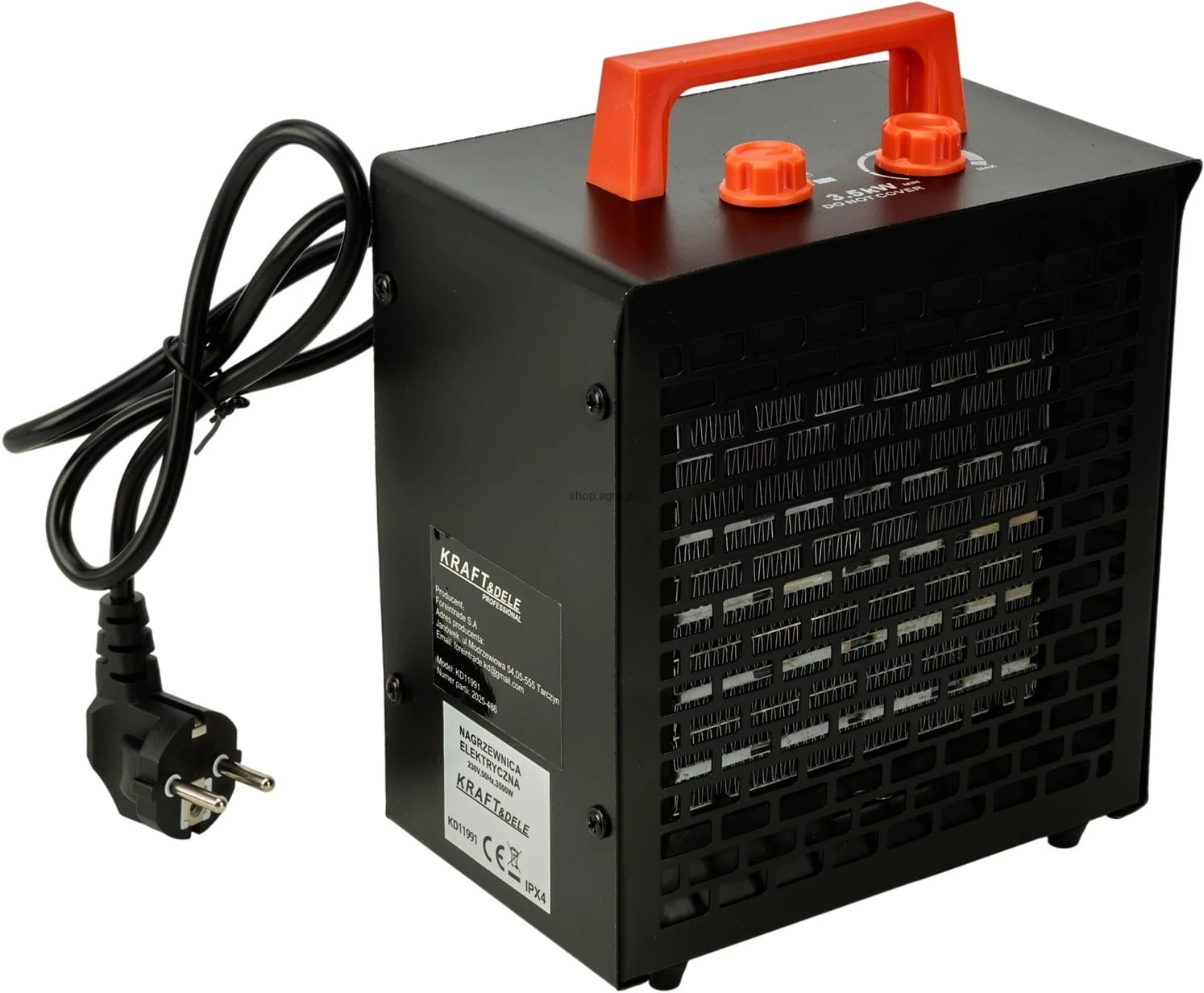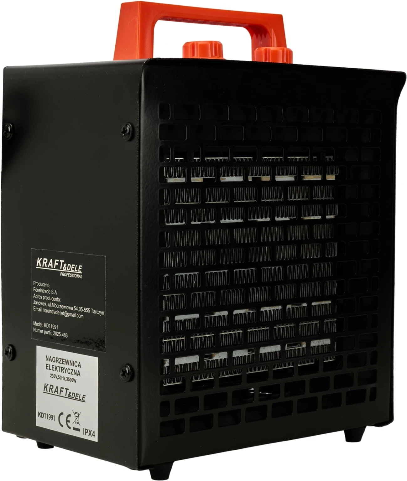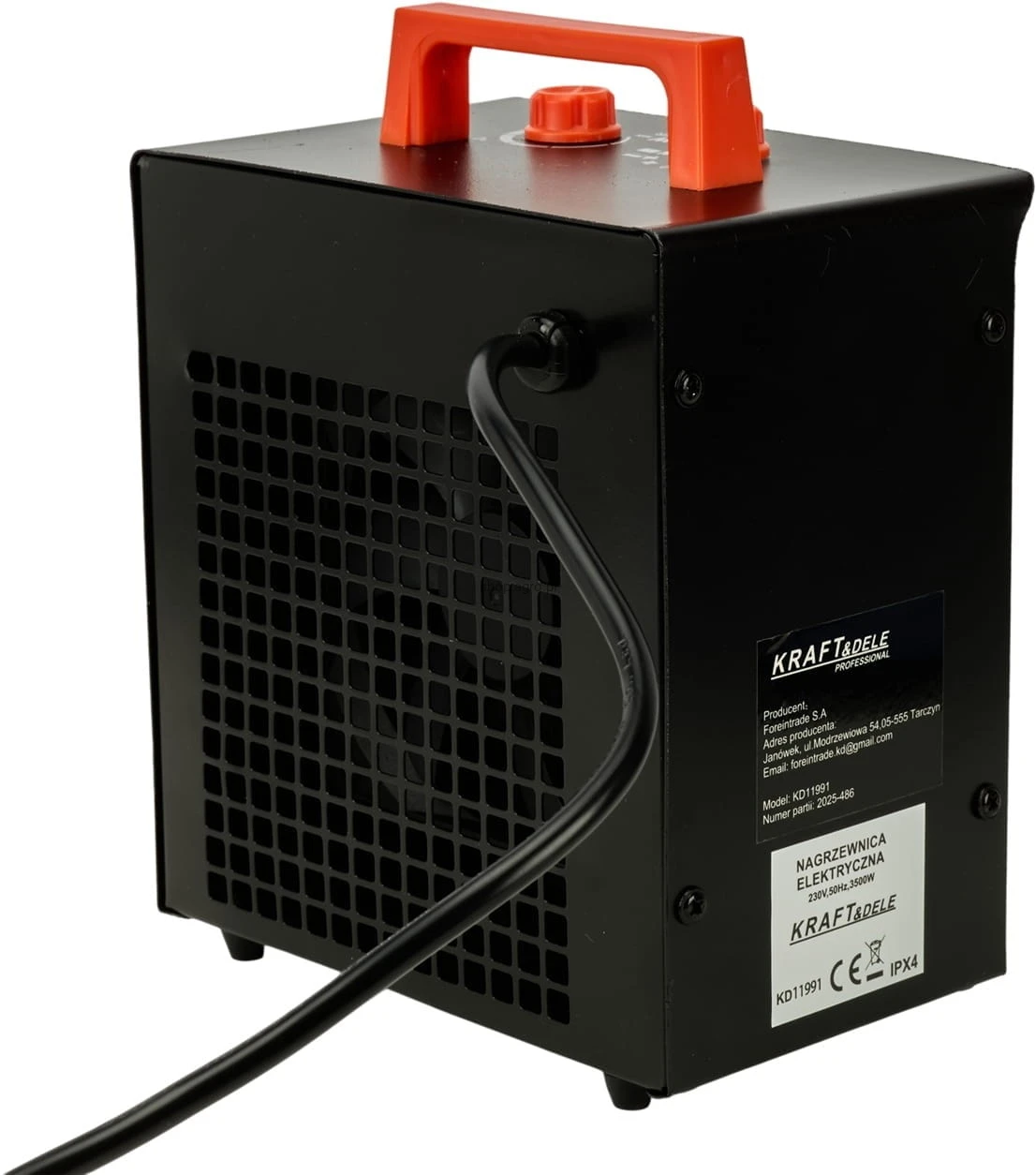 nagrzewnica elektryczna; termowentylator; grzejnik warsztatowy; farelka przemysłowa; ogrzewacz 3500W; nagrzewnica KD11991; ogrzewanie pomieszczeń; grzejnik elektryczny;