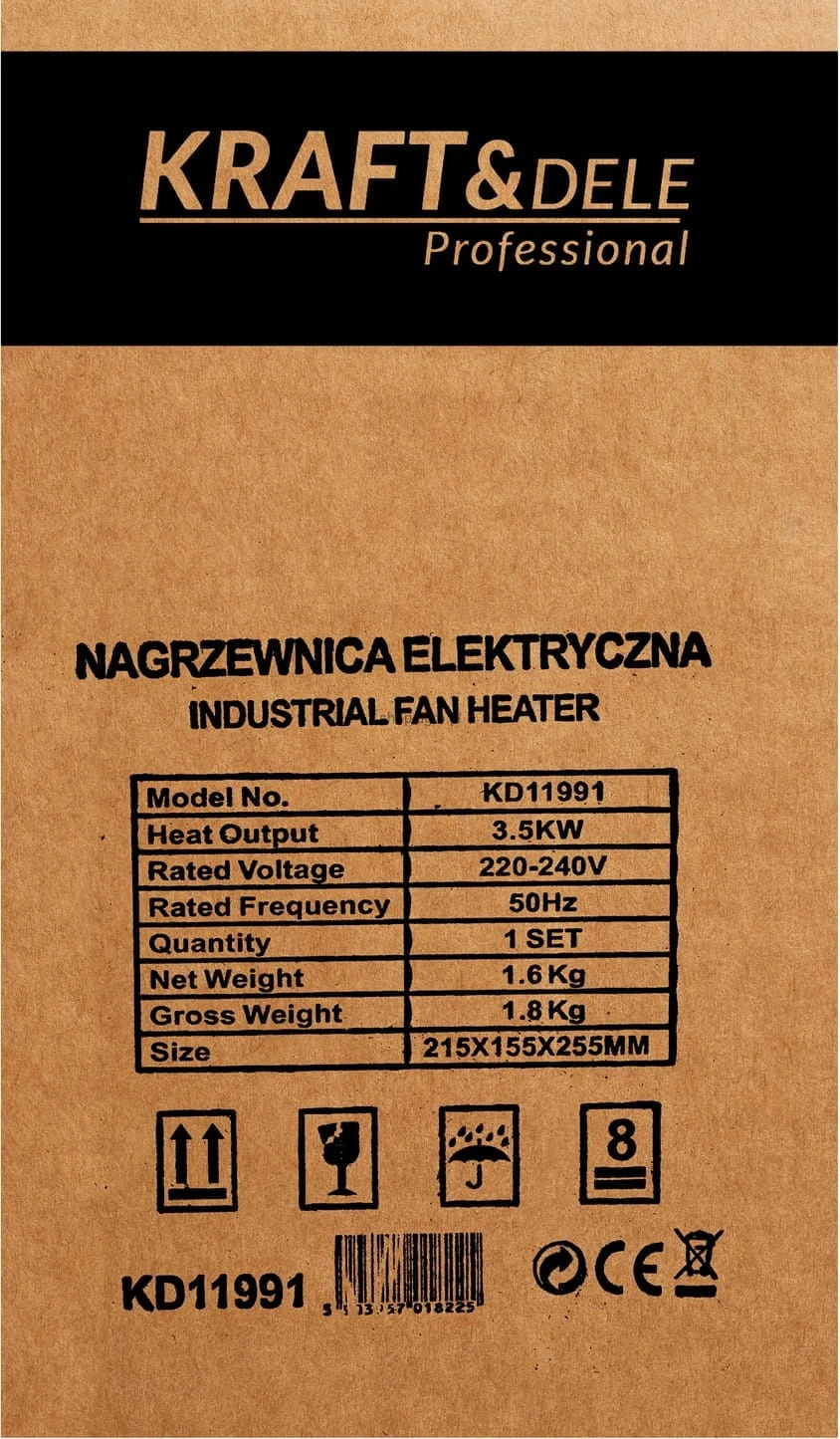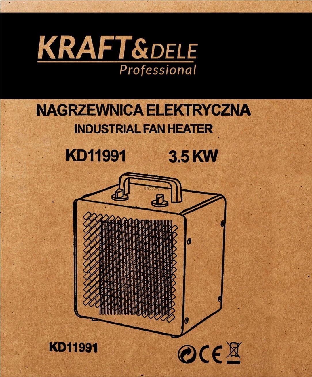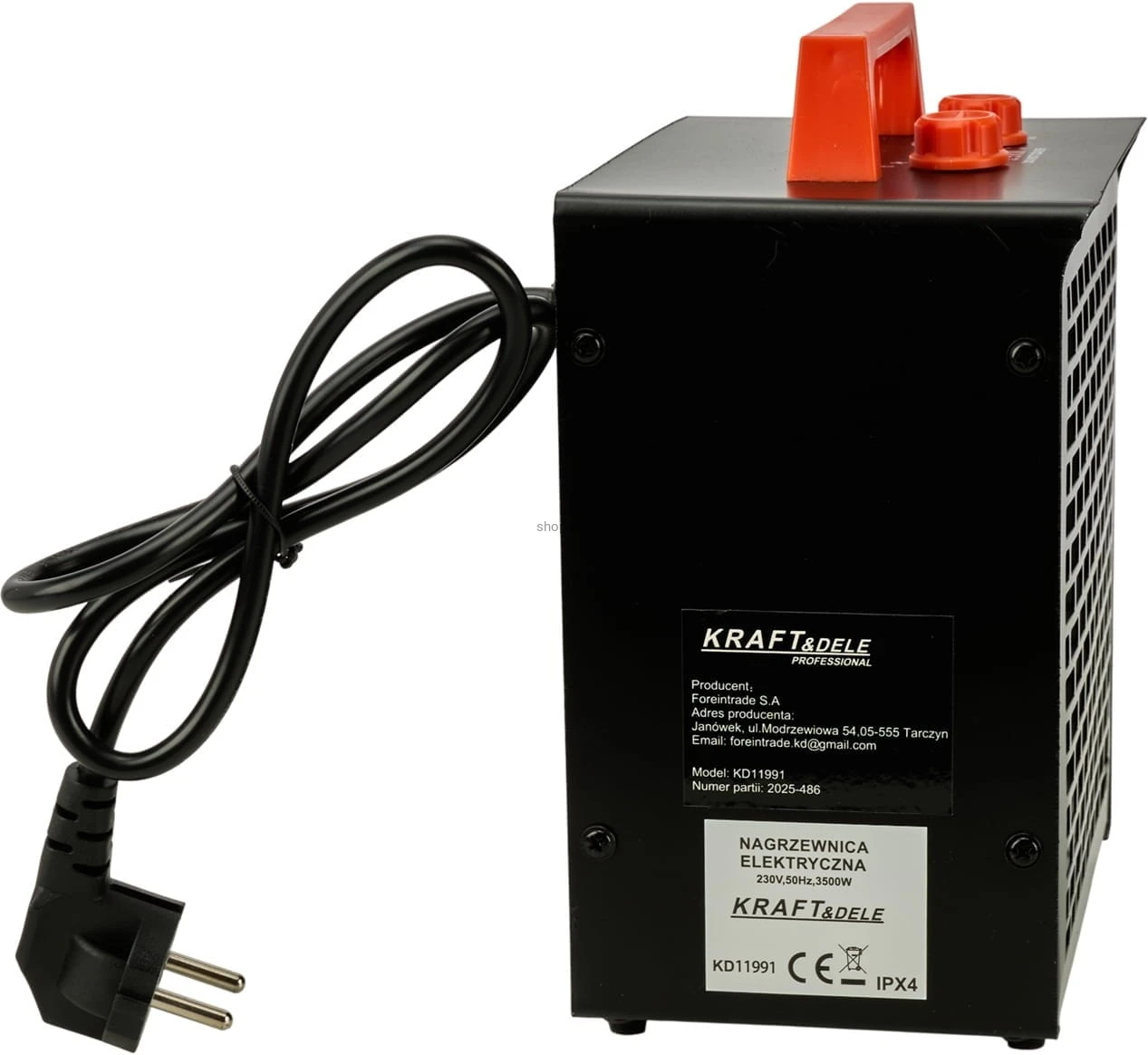 KD11991 to kompaktowa i wydajna nagrzewnica elektryczna marki KRAFT&DELE, przeznaczona do ogrzewania pomieszczeń domowych, warsztatów, magazynów, szklarni oraz placów budowy. Dzięki mocy 3500W urządzenie szybko podnosi temperaturę otoczenia, zapewniając komfort cieplny nawet w chłodniejszych warunkach.