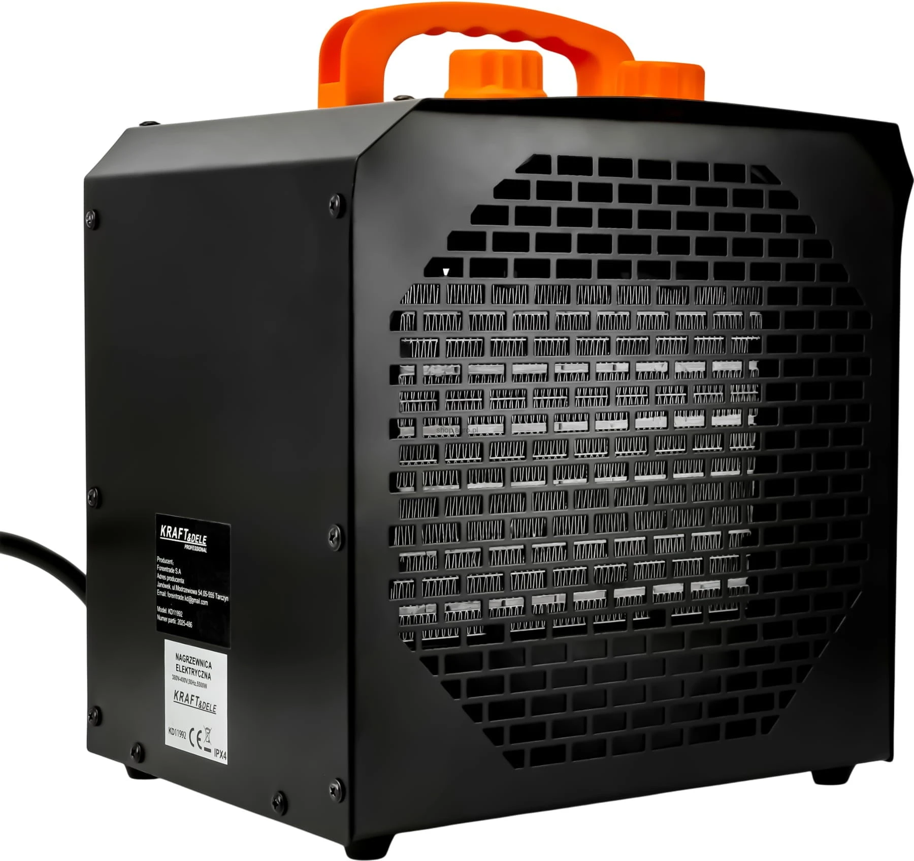 nagrzewnica elektryczna; termowentylator; grzejnik warsztatowy; farelka przemysłowa; ogrzewacz 5500W; nagrzewnica KD11992; ogrzewanie pomieszczeń; grzejnik elektryczny;