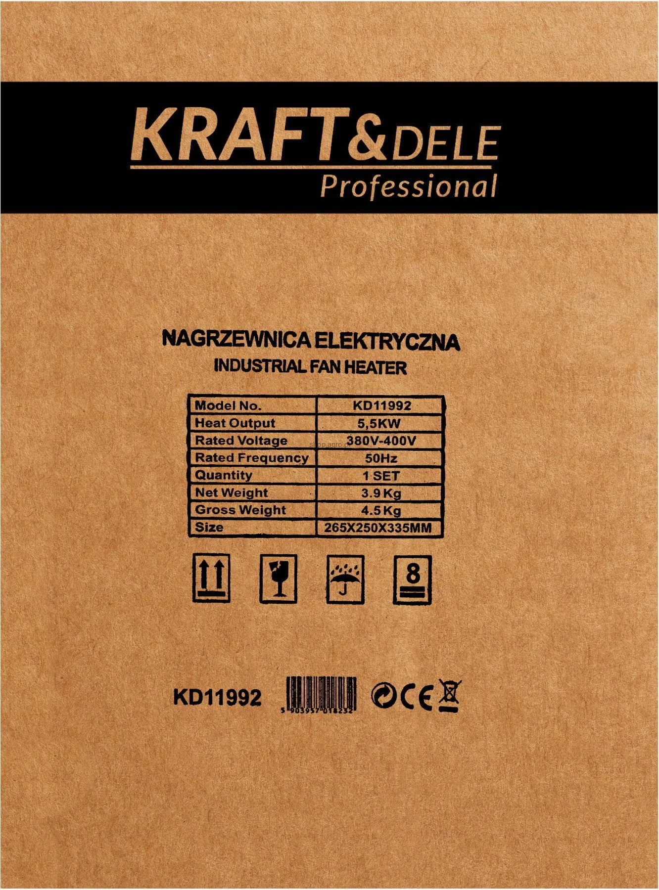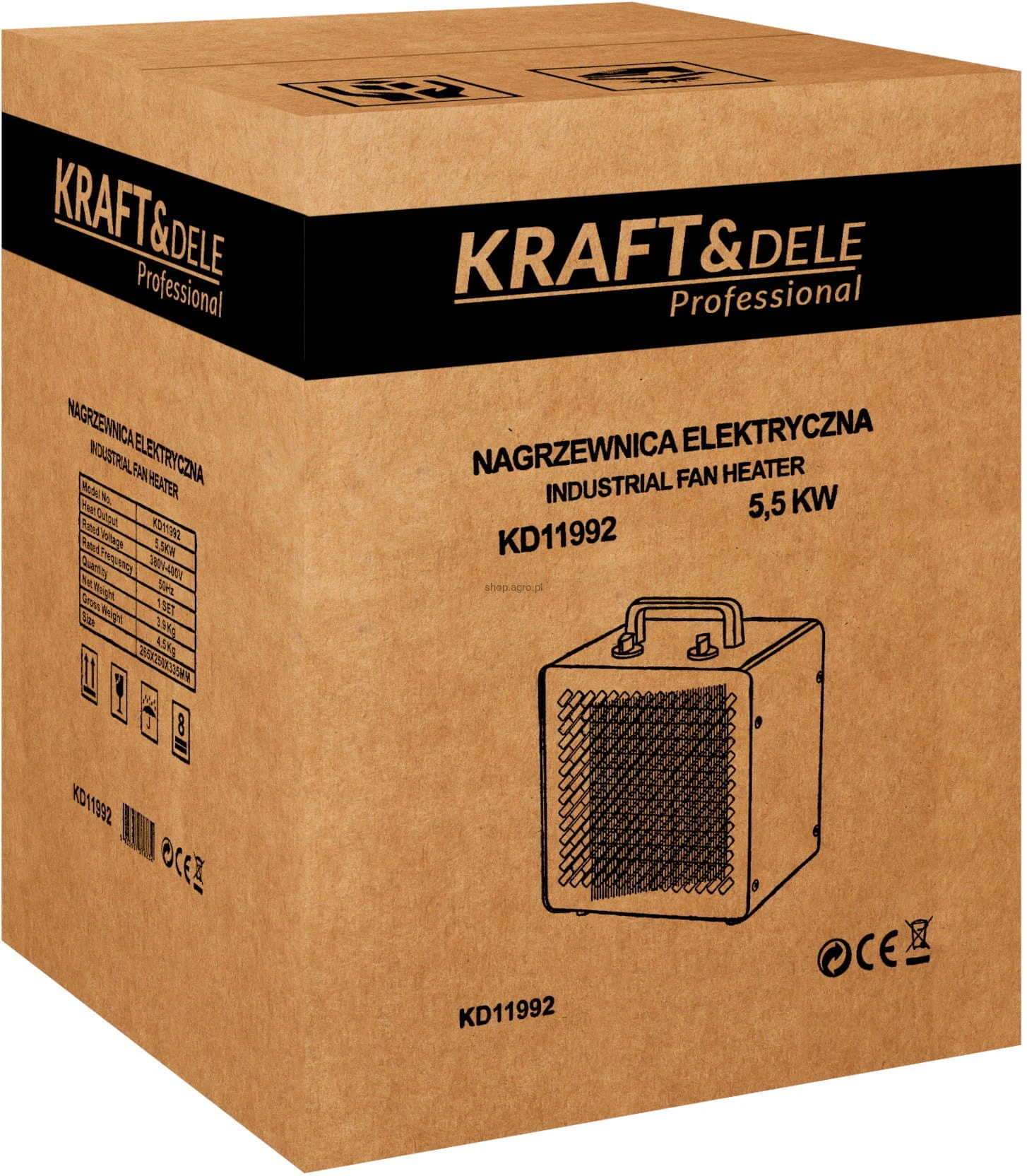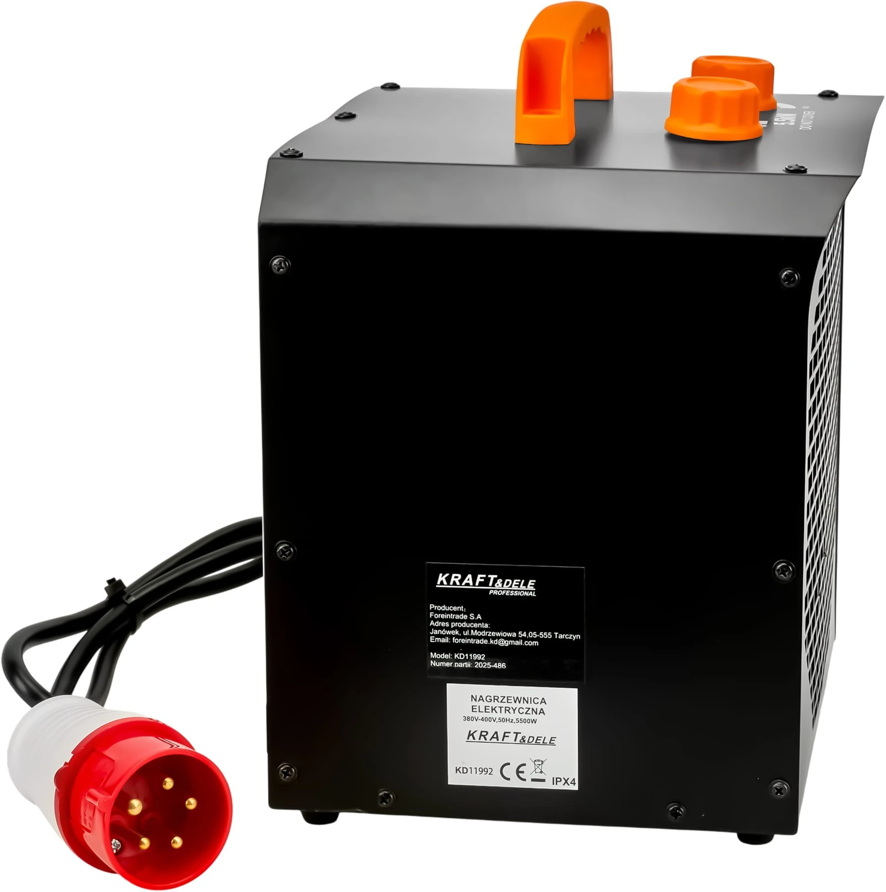 KD11992 to kompaktowa i wydajna nagrzewnica elektryczna marki KRAFT&DELE, przeznaczona do ogrzewania pomieszczeń domowych, warsztatów, magazynów, szklarni oraz placów budowy. Dzięki mocy 5500W urządzenie szybko podnosi temperaturę otoczenia, zapewniając komfort cieplny nawet w chłodniejszych warunkach.