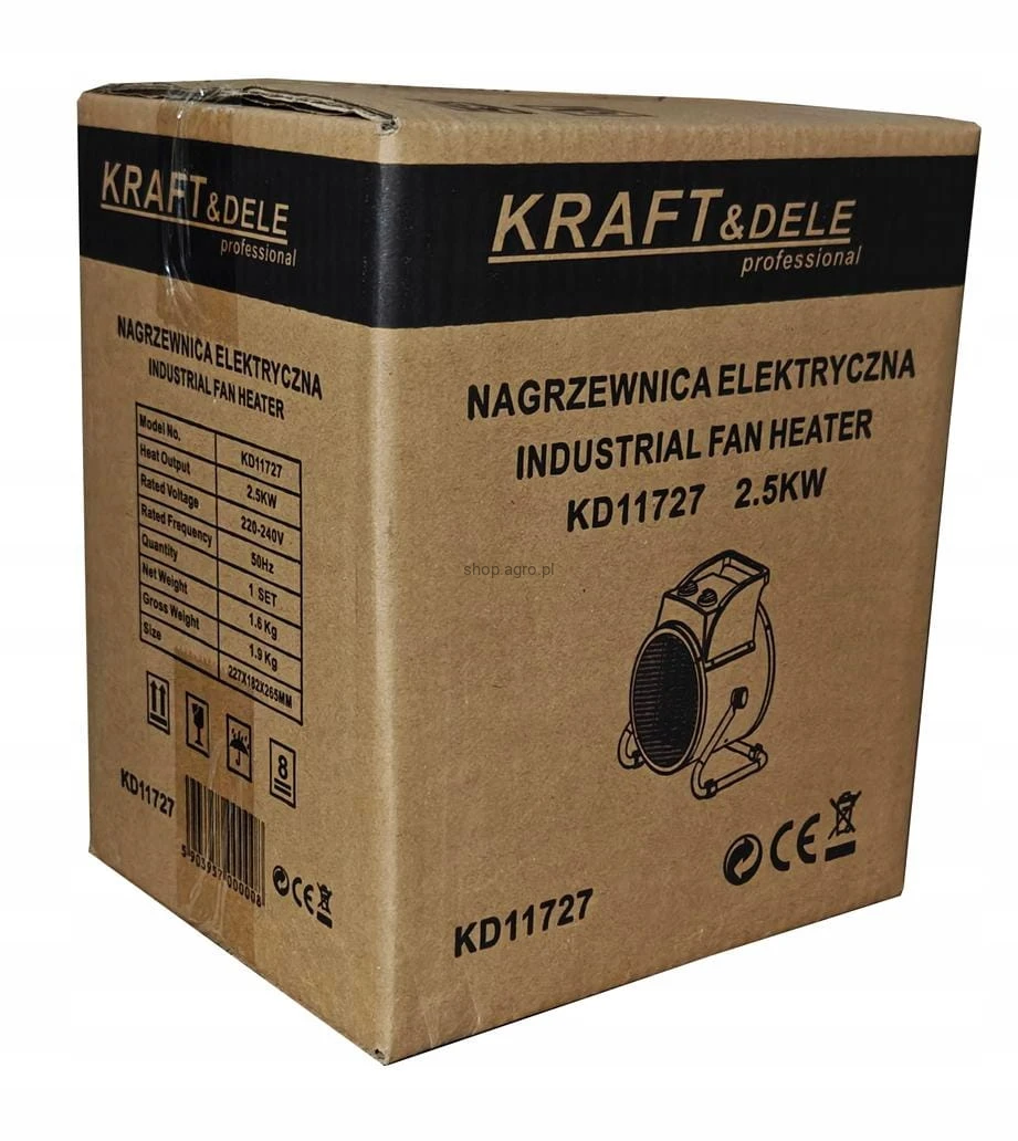 Nagrzewnica elektryczna Kraft&Dele 2,5kW farelka grzejnik +termostat